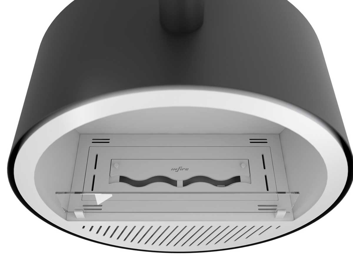 Die Kamine der Marke INFIRE werden aus sicherem, säurebeständigem Edelstahl gemäß den höchsten Standards der Qualitätsnormen hergestellt, was einen sicheren und effektiven Betrieb über viele Jahre gewährleistet. Eine Keramikfasereinlage mit Netz erhöht die Sicherheit und verlängert und optimiert den Brennvorgang. Mit der Schiebeleiste können Sie die Flammengröße anpassen und den Kamin sicher löschen, und durch die Wellenform entsteht ein zusätzlicher 3D-Effekt.