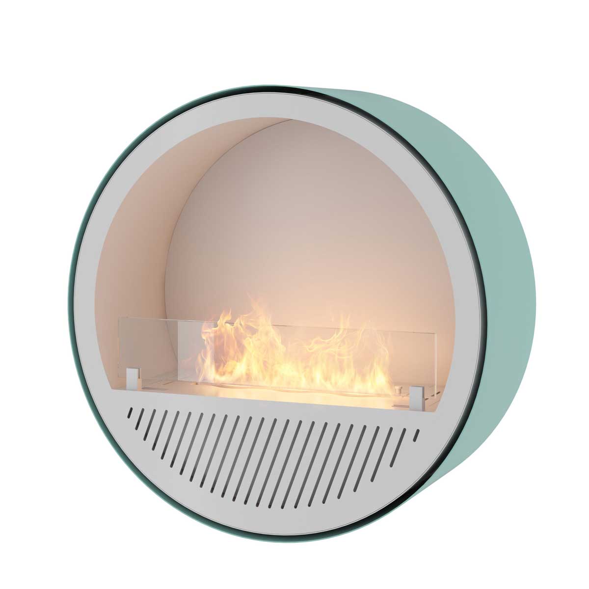Der innere Teil des Kamins mit dem Brenner ist immer in Schwarz oder Weiß erhältlich. Der äußere Rahmen mit Rohr, der Eleganz und einen modernen Touch verleiht, ist in verschiedenen Farben erhältlich.