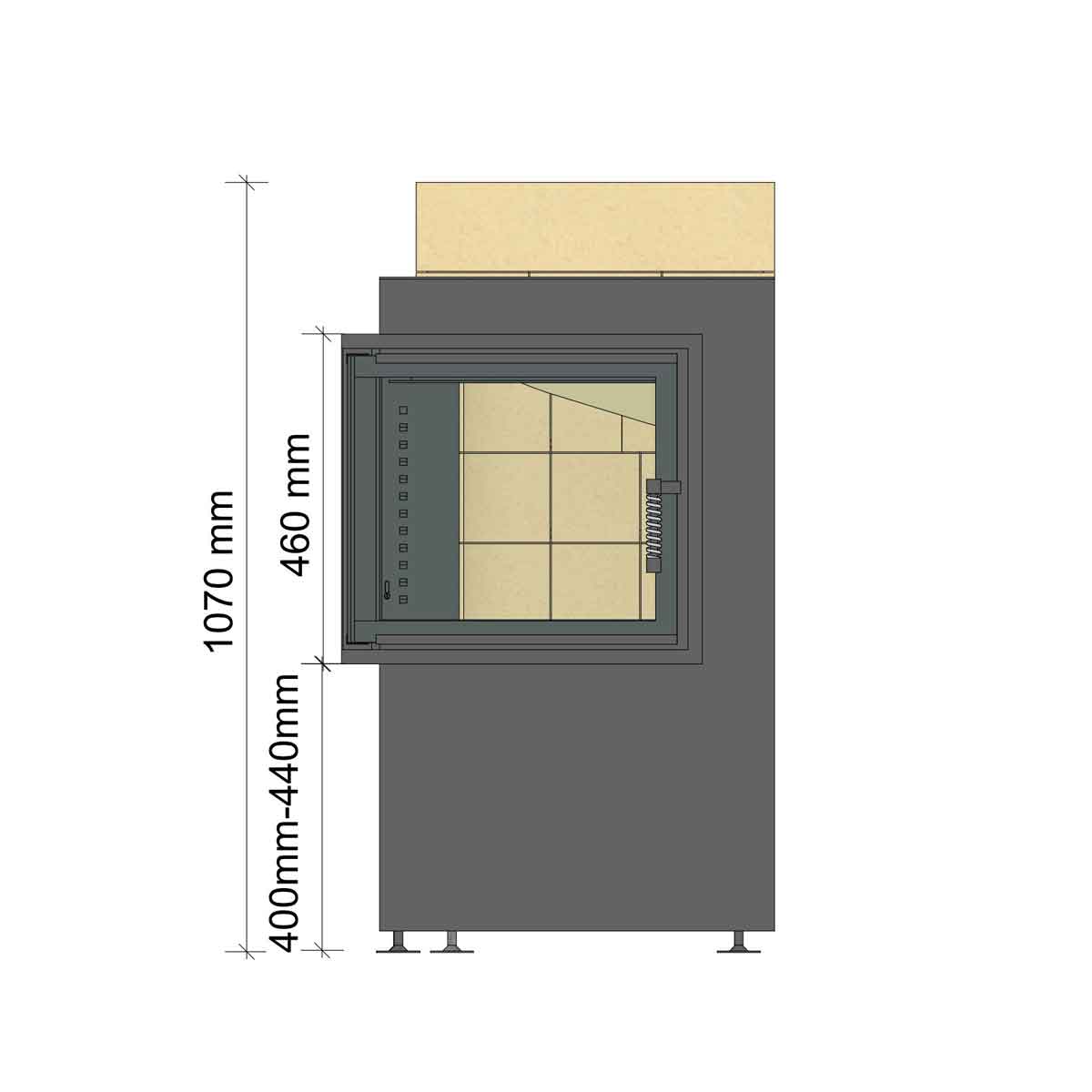 - Der Komplett-Feuerraum Typ B Plus 90 inkl. Grundofentüre GT-AIR 90° – mit FR-Podest B