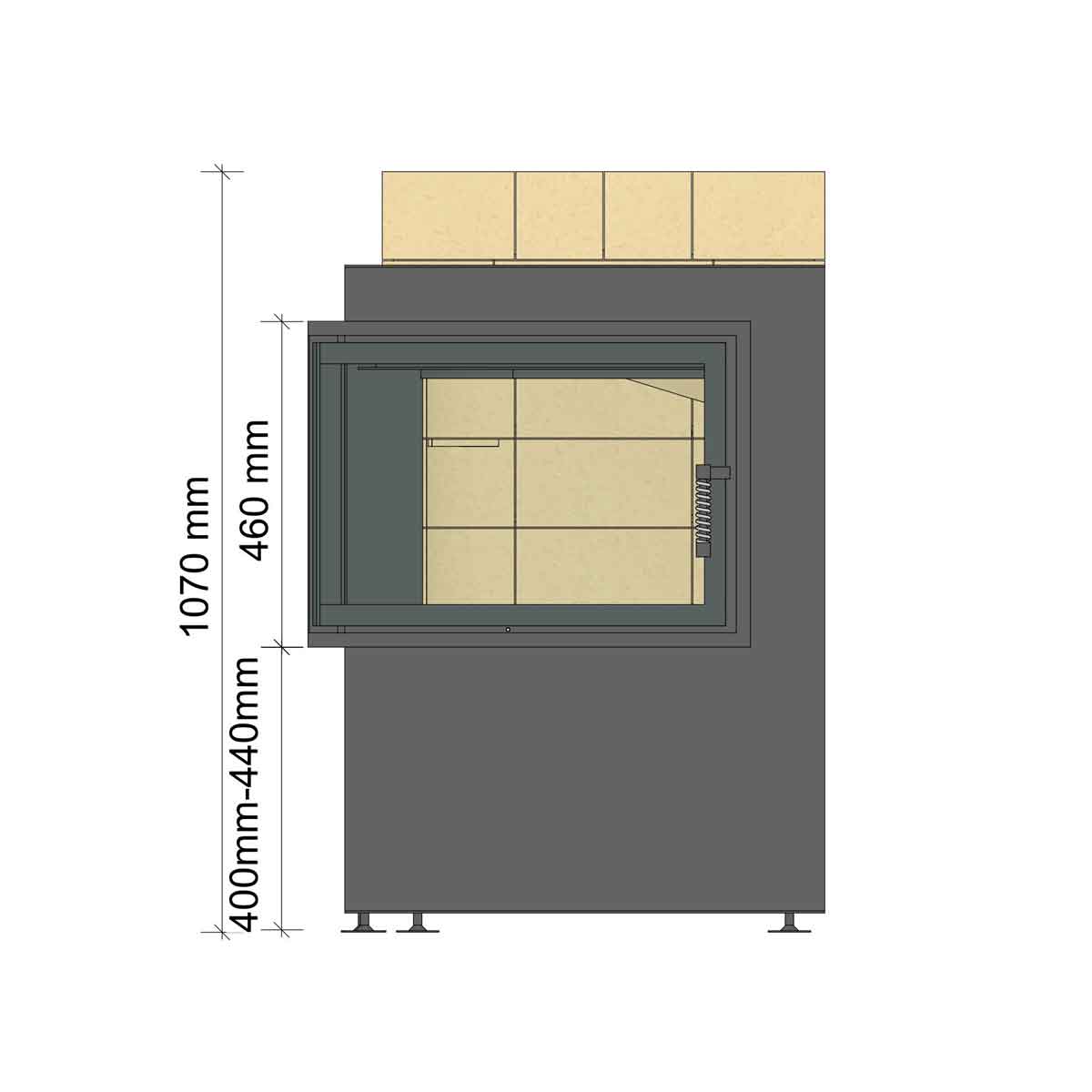 - Der Komplett-Feuerraum Typ C Plus 90 inkl. Grundofentüre GT-AIR 90° – mit FR-Podest C