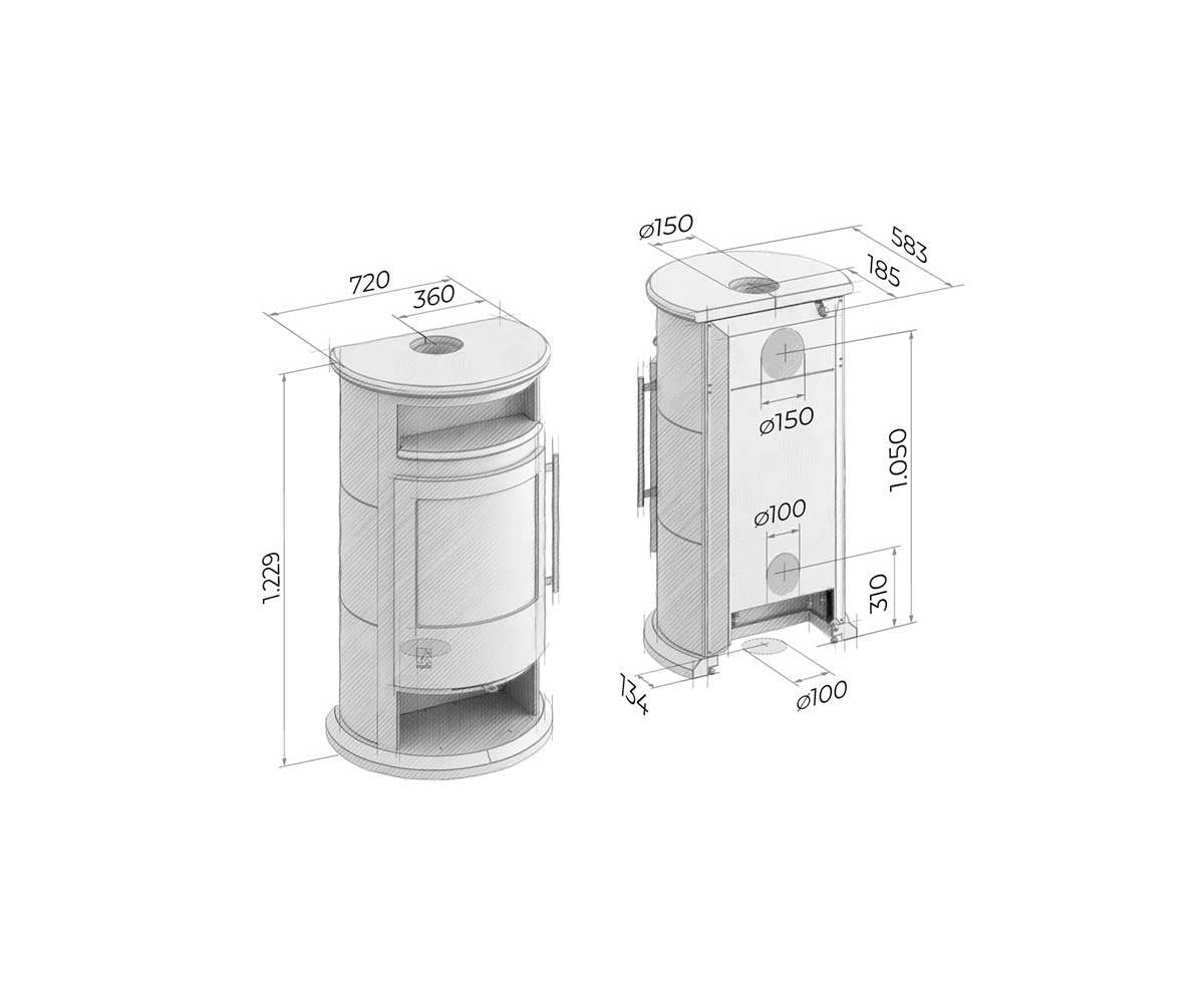 - Anschluss Wechselstutzen Ø 150 mm: oben, hinten (vormontiert)