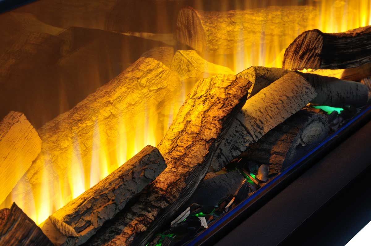 Mit HD-Antireflexionsglas und echtem knisternden Kaminfeuer-Soundeffekt.