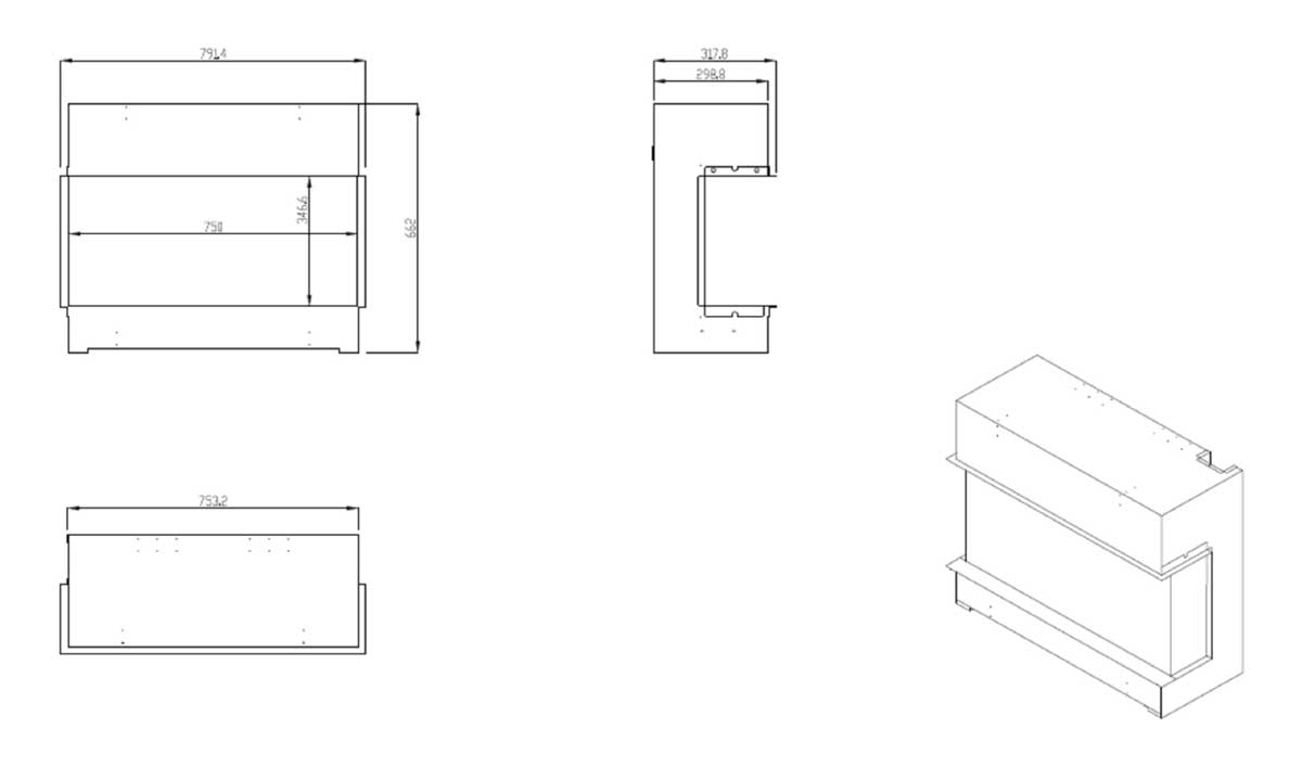 - 3 Anordnungen serienmäßig enthalten. ( 1-, 2- oder 3-seitiger Kamin)