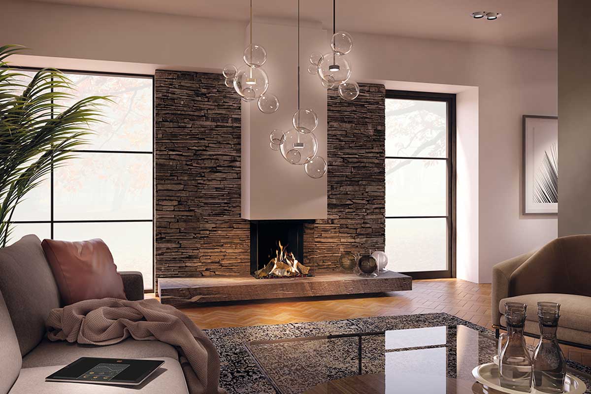 Möchten Sie lieber überhaupt keine Wärme, sondern nur die Atmosphäre eines brennenden Kamins? Verwenden Sie dann die Funktion Eco Glow. Das LED Glutbett von Eco Glow erweckt den Eindruck eines brennenden Kamins. Dieses naturgetreue Glutbett gibt keine Wärme ab und ist separat einstellbar. Über die DRU Fire app oder mit der Fernbedienung bestimmen Sie ganz einfach die Atmosphäre in Ihrem Haus.