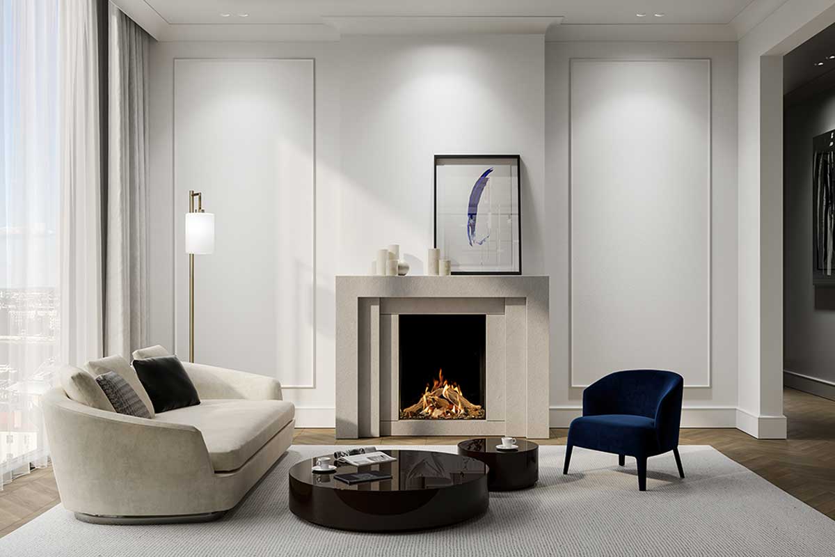 - Großzügiges Design: Der Maestro 60 Tall Eco Wave bietet sich vor allem für kleinere Räume an. Der Kunde kann das Interieur an den persönlichen Stil anpassen, ob in edlem Schwarz, rustikalem Backstein oder verspiegeltem Ceraglas, das die Flammen zusätzlich reflektiert und verstärkt.