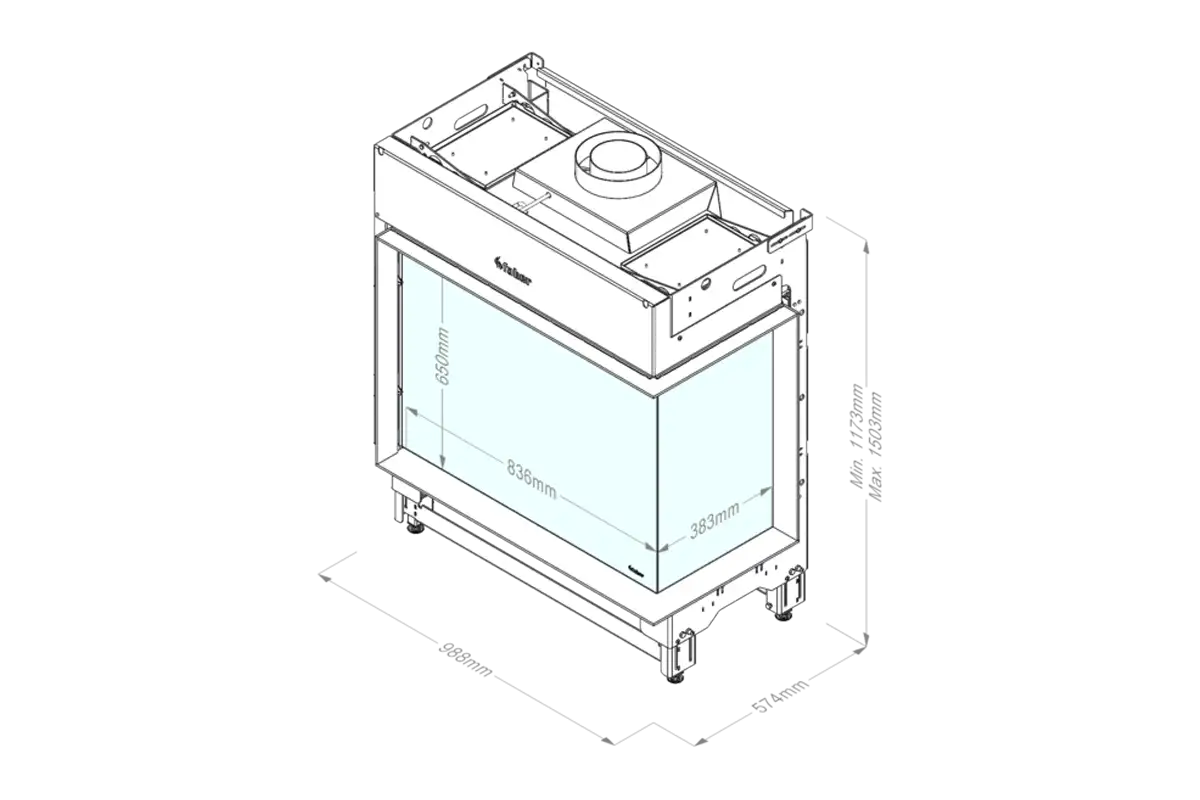 - Feuersicht B x H x T mm: 837 x 650 x 383