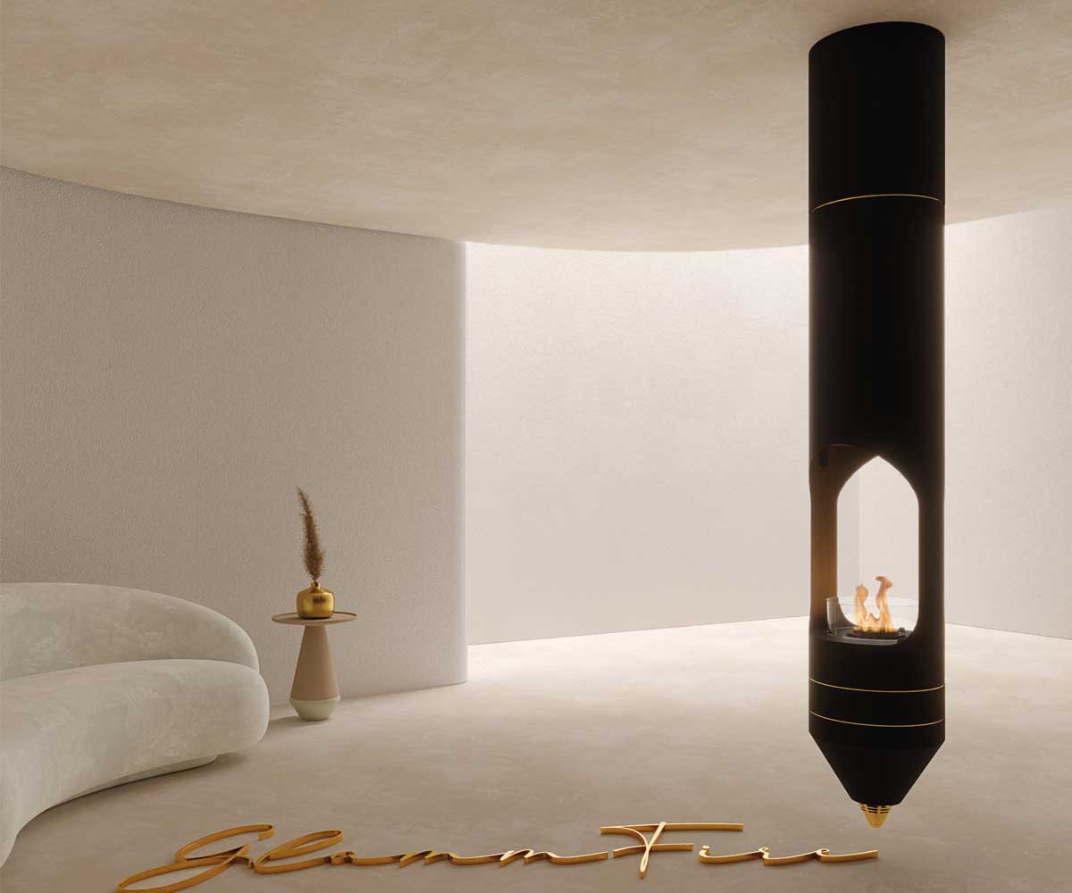 GlammFire Signature Bioethanolkamin, eine stilvolle Deckenlösung, die modernes Design mit luxuriöser Funktionalität verbindet