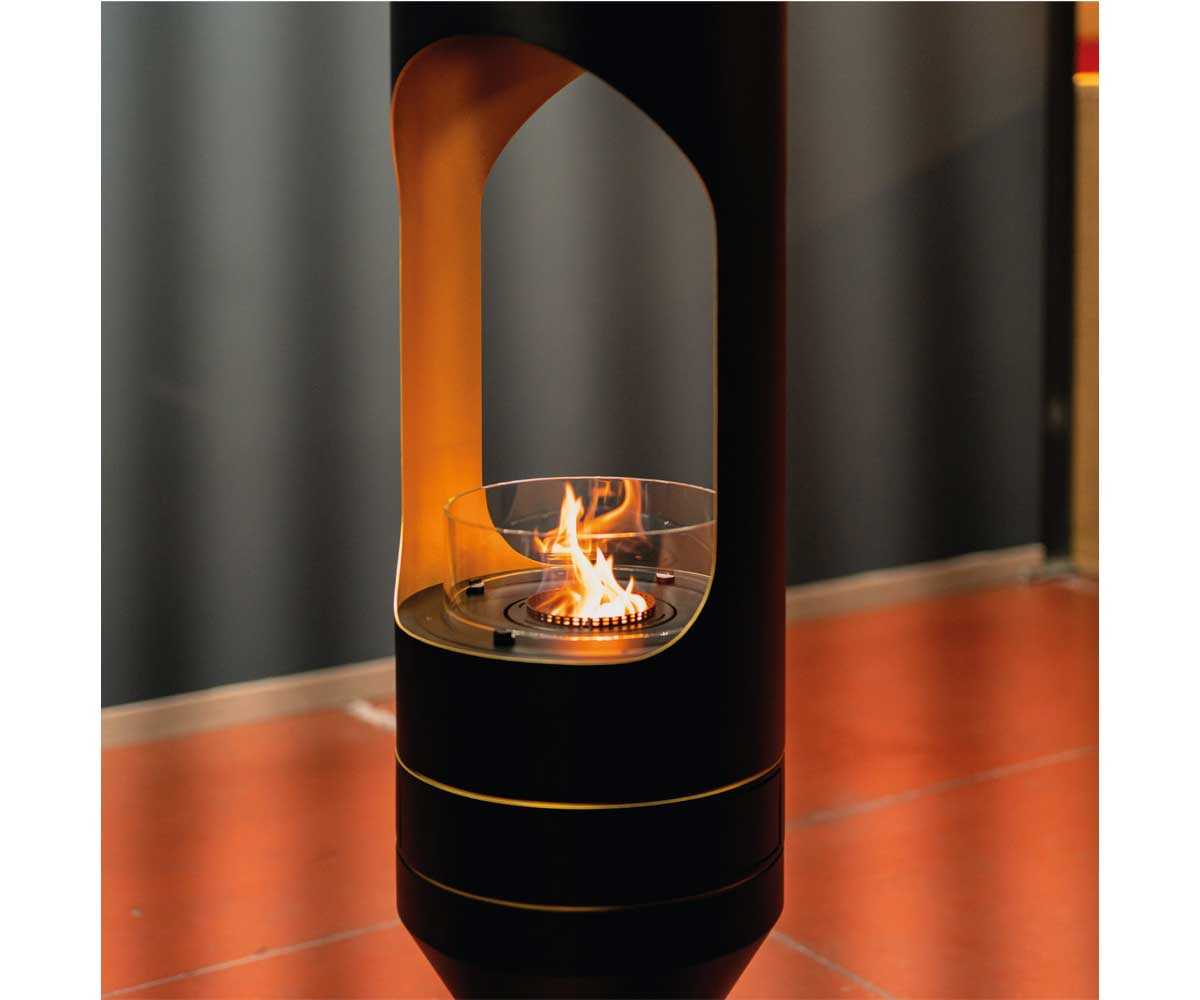 Sicht aufs Feuer: Durch die Drehfunktion kann der Kamin um 360° gedreht werden, so dass immer ein idealer Winkel mit Blick auf die Flammen besteht.