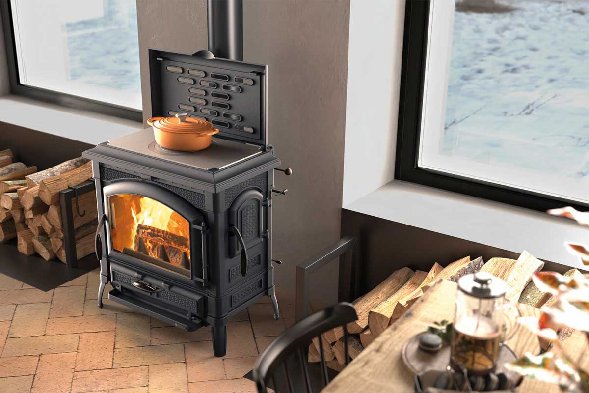 Stilvolles Design trifft effiziente Wärme / mit Kochplatte aus Guss