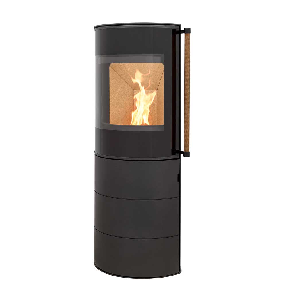 Ovaler Kaminofen in schlichtem, modernem Design, auf das Wesentliche reduziert. Dank der schmalen Bauweise lässt sich der Citro an vielen Stellen im Raum leicht posiotionieren. Durch die mandelartige Form trägt der Ofen auch flach vor eine Wand gestellt kaum auf.