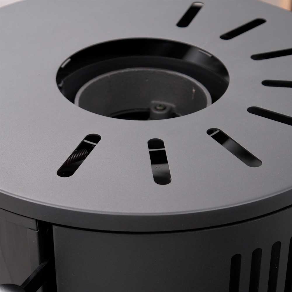 Das zeitlose Design gepaart mit einer 160° Vollglas-Sichtscheibe bietet perfekte Einsicht ins Flammenspiel aus jeder Perspektive. Genießen Sie durch die großzügig gestaltete Panoramascheibe feurig-romantische Augenblicke. Hinter dem zeitlosen, eleganten Design verbirgt sich modernste Technik. Unterhalb der Brennkammer befindet sich ein perfekt in das Design eingearbeitetes Holzfach mit separater Tür.