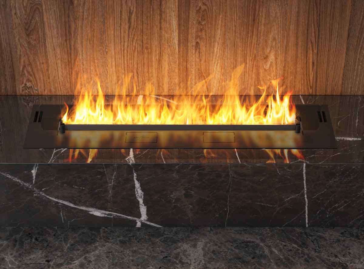 - Dank eines elektronischen Steuerungssystems erfolgt das Anzünden und Löschen der Flamme vollautomatisch – ein Knopfdruck auf der Fernbedienung oder dem Touchpanel genügt.