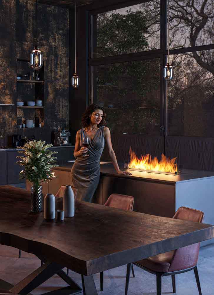 inFire Kamine können überall installiert werden: zum Beispiel an (in) einer Wand, auf dem Boden, auf Möbeln oder draußen auf einer Terrasse. Neben ihrer dekorativen Funktion erzeugen inFire Kamine auch Wärme, die bereits nach wenigen Minuten die Temperatur im Raum merklich erhöht.