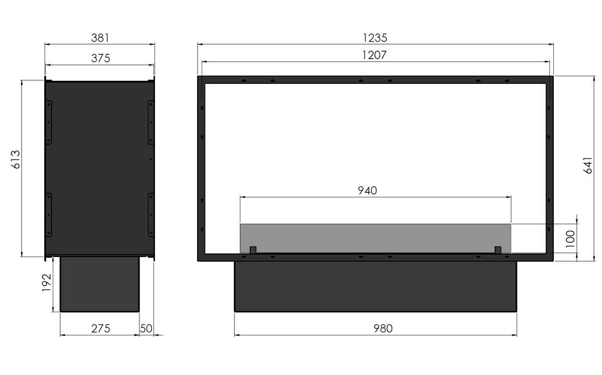 Bioethanolkamin inFire 2SIDE ETRONIC 1200