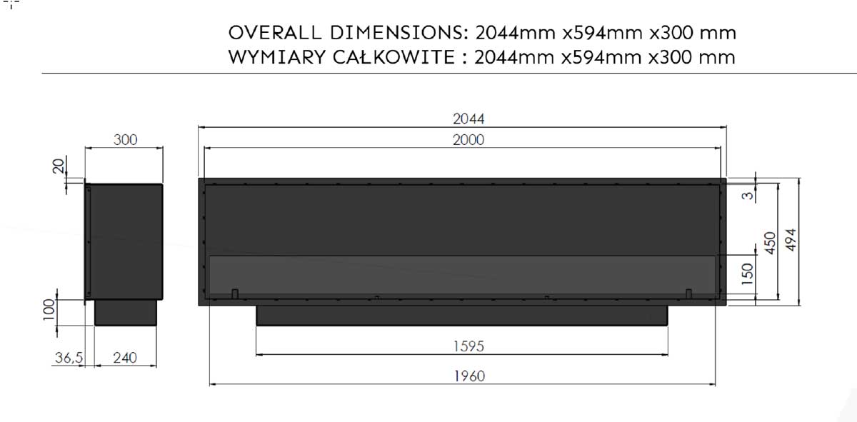 - Abmessungen für die Wandöffnung BxHxT: 2110x560x310 mm