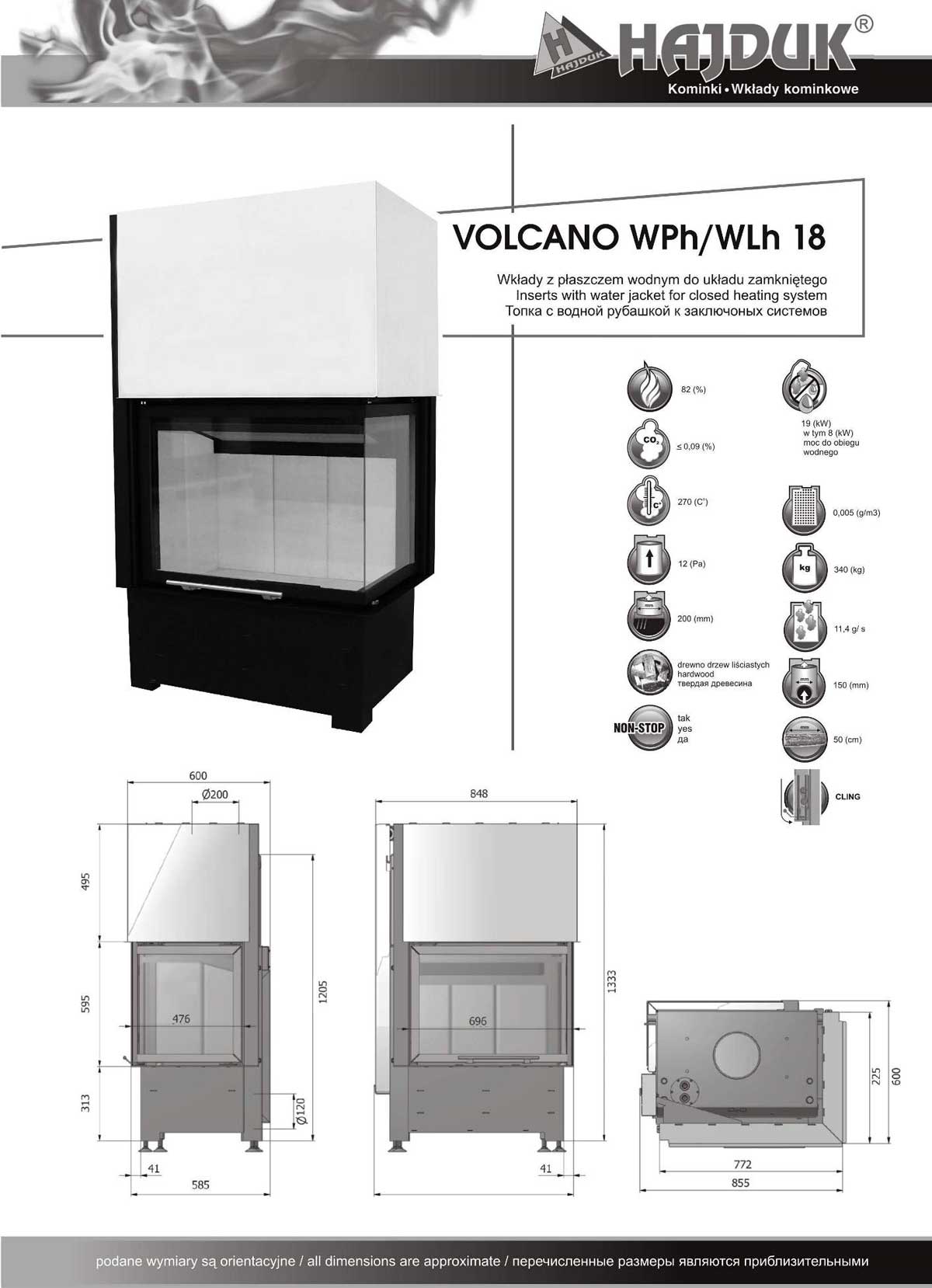 Hajduk Kamineinsatz VOLCANO WLh 18/WPh 18