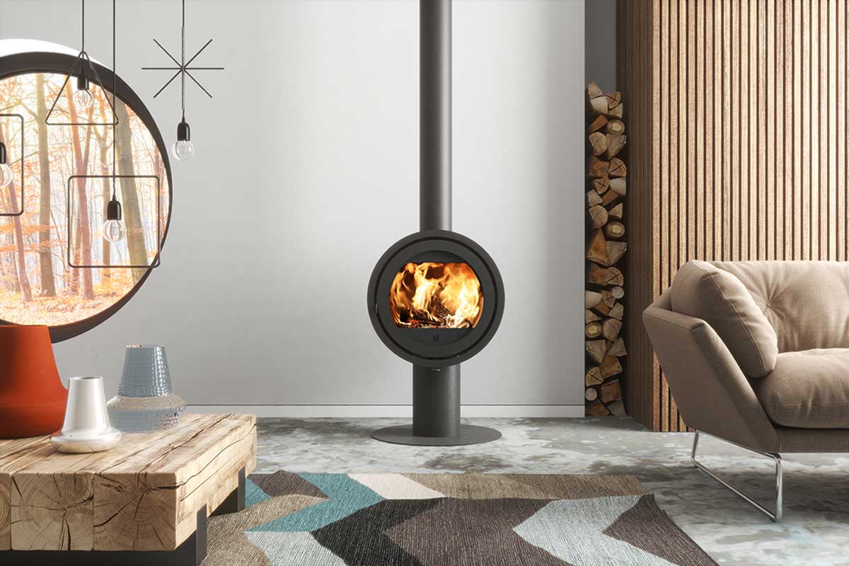 "Odin Front Base – runder Designerkamin mit innovativem Standfuß. Faszinierendes Flammenspiel & flexible Aufstellung mit Außenluftanschluss. Jetzt entdecken!"