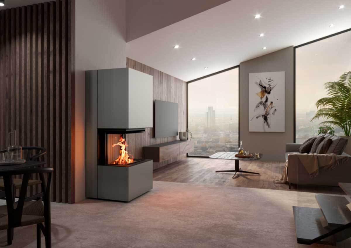 Einzigartig an diesen Modellen ist, dass sie direkt vor der Wand aufgestellt werden können - und zwar ohne den bei herkömmlichen Kaminöfen notwendigen Wandabstand. Dies wird durch eine innovative rückseitige Dämmung ermöglicht, die für maximale Platzersparnis und eine stilvolle Integration sorgt.