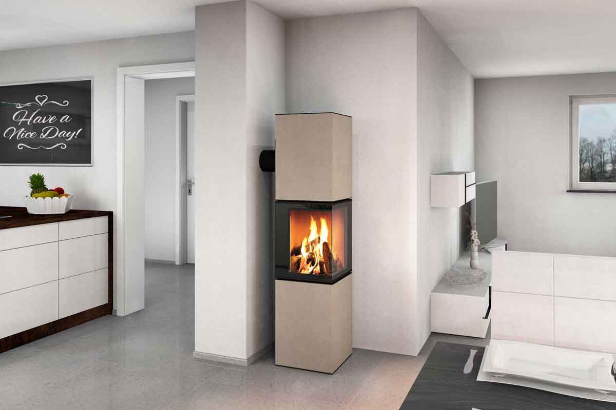 Der neocube S20XL ist die höhere Variante des S20 Modells. Durch die Höhe wirkt der Ofen imposanter und das nach rechts gerichtete Eckfenster ist ästhetisch mittig positioniert.