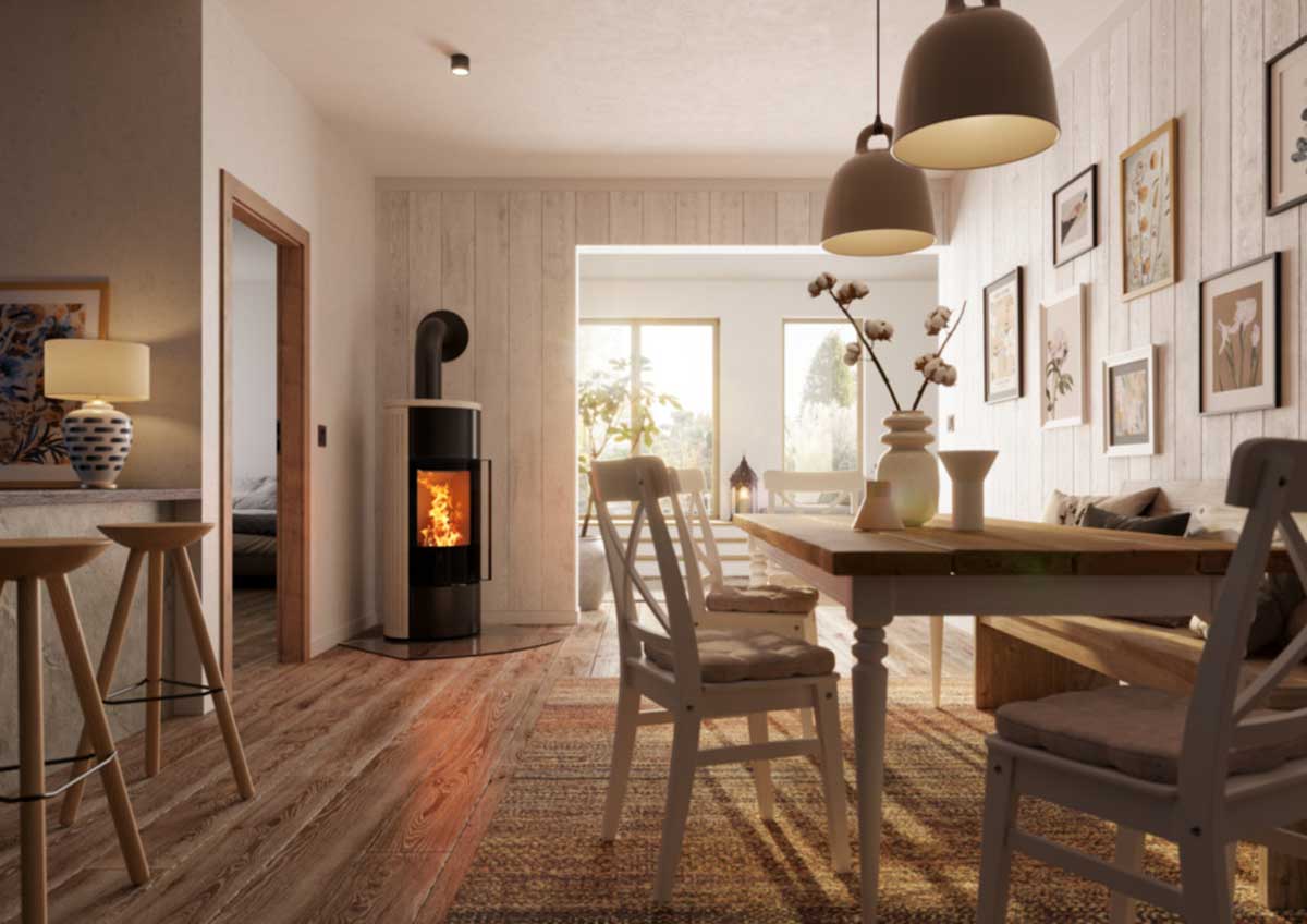 - Eleganz der runden Form: Modelle wie der Ambiente beeindrucken durch eine runde Form und klare Linien. Ihr minimalistisches Design fügt sich stilvoll in jedes Einrichtungskonzept ein – von modern bis klassisch. Der Ambiente-Kaminofen hat eine elegante Präsenz, bleibt aber dezent und nimmt dem Raum nicht seine Offenheit.