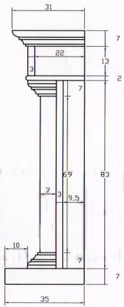 Lieferumfang: Bodenplatte, 2 seitliche Säulen, horizontale Abdeckplatte, Kopfplatte und 3-4 Innenblenden, ohne eventuell abgebildeten Heizeinsatz.