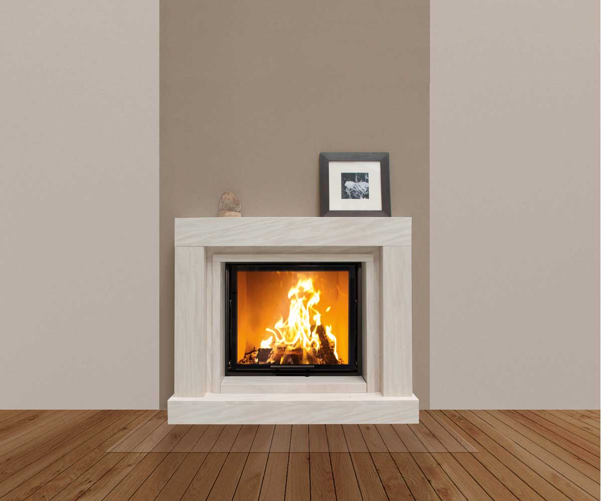 ohne abgebildeten Kamineinsatz Schmid Lina 7363 mit schiebbarer Tür