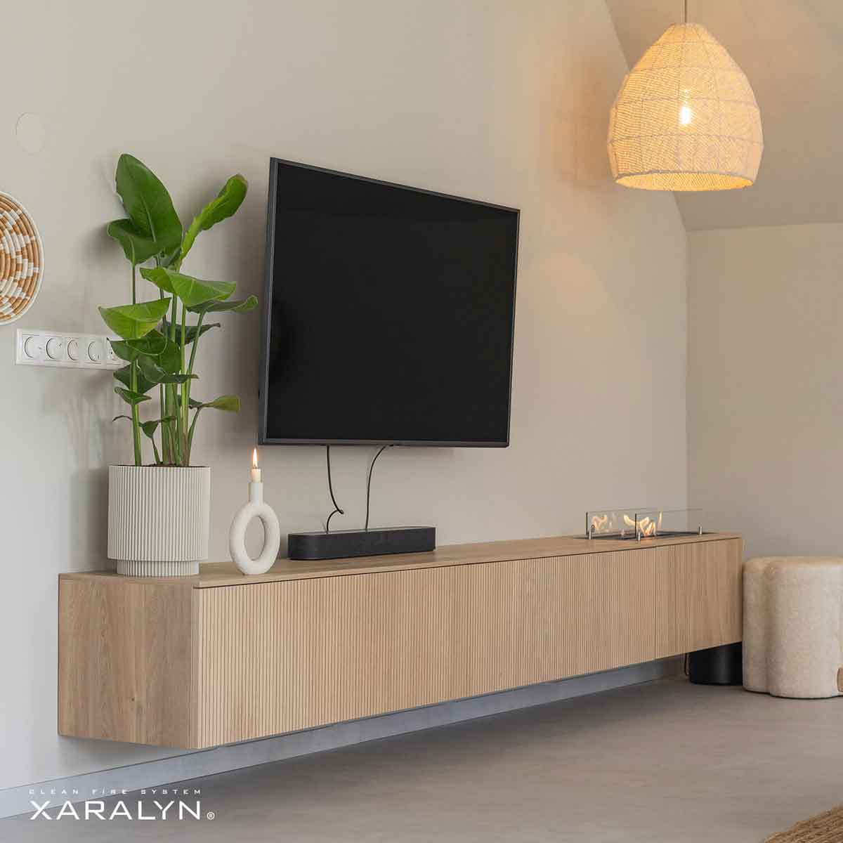 Der Xaralyn Bioethanol-Wandkamin Jörne Long vereint natürliche Materialien mit moderner Technologie und schafft so ein stilvolles Ambiente in jedem Raum. Dieser kompakte Kamin besticht durch seine eleganten, vertikalen Lamellen in warmem, hellem Holzton und verleiht Ihrem Wohnraum im Handumdrehen eine Oase der Ruhe und Eleganz.
