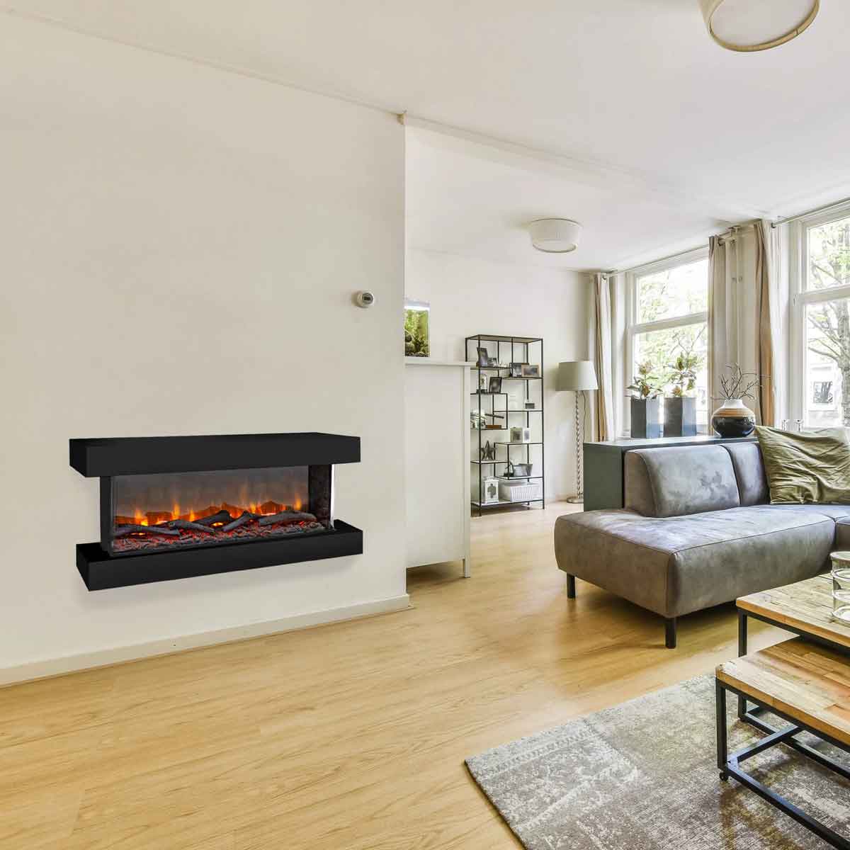 Der elektrische Kamin Disegno S90 kann sowohl als Zusatzheizung als auch rein dekorativ genutzt werden – ideal für Wohnräume, Schlafzimmer oder Entertainment-Wände.