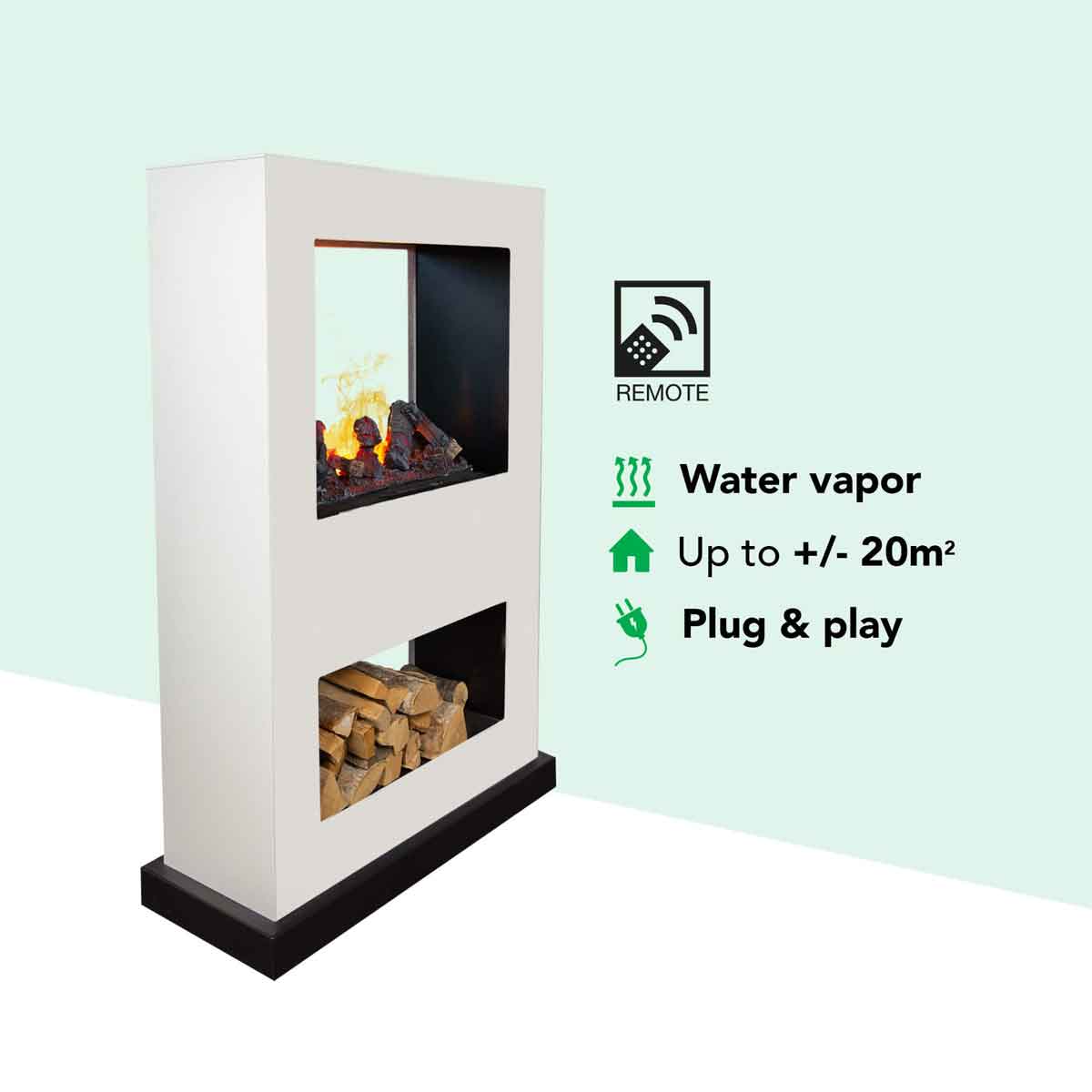 Ein Wassertank, LED's und Ultraschallvernebler zaubern ein unbeschreiblich authentisches Flammenspiel. Nicht mehr zu unterscheiden von realem Feuer. Mit einem gefüllten Wassertank von 1,7 Liter Inhalt brennt der Kamin rund 8-10 Stunden. Der freigesetzte ultrafeine Wasserdampf trägt zusätzlich zur Verbesserung des Wohnklimas bei. Die Flammenintensität ist regelbar und eine Komfort-Fernbedienung sorgt für einfache Handhabung