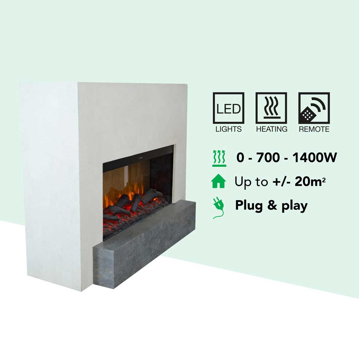 - Ortsunabhängigkeit: Stellen Sie den Kamin einfach dort auf, wo Sie ihn wünschen. Alles, was Sie benötigen, ist eine Steckdose – Stecker rein und los geht's!