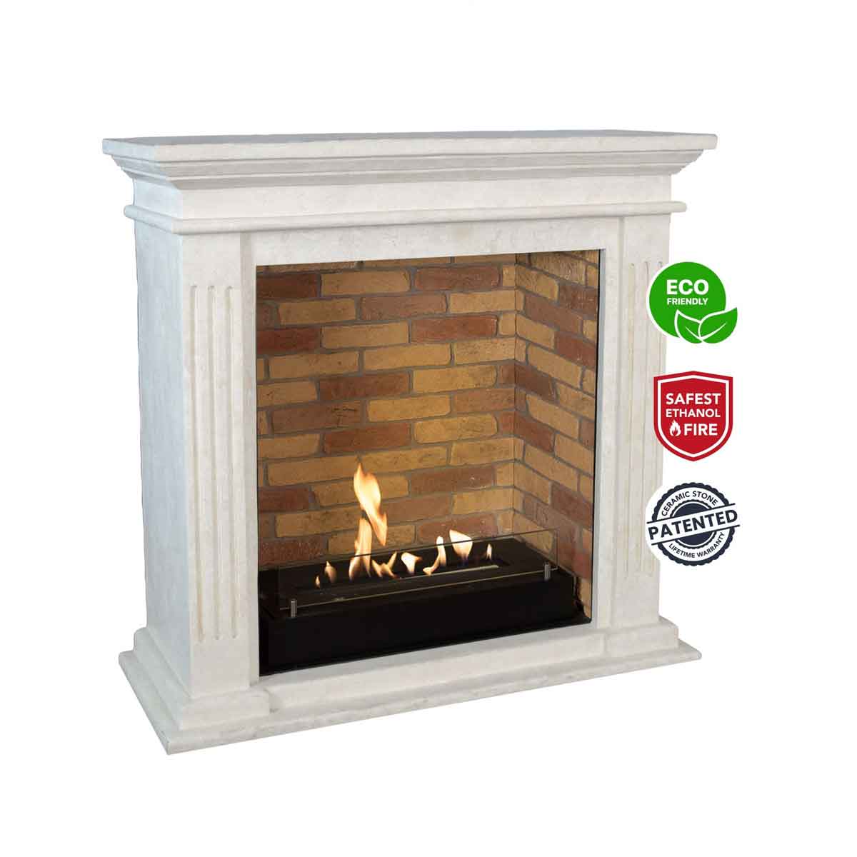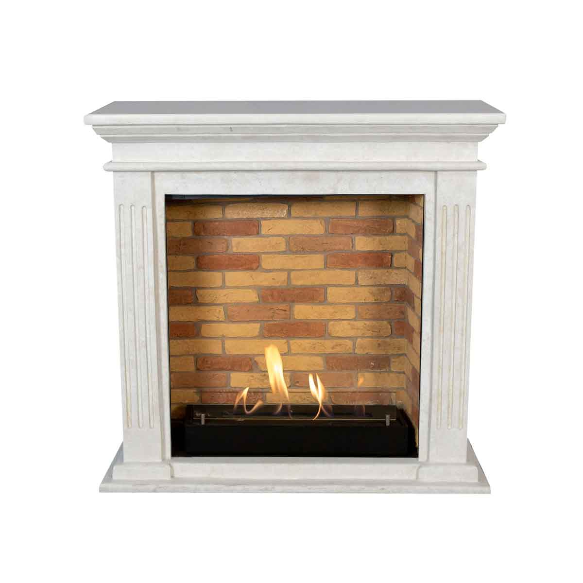Xaralyn Cadiz Stein Weiß mit Steindekor – Ethanolkamin aus Naturstein mit natürlichem Flammenspiel
