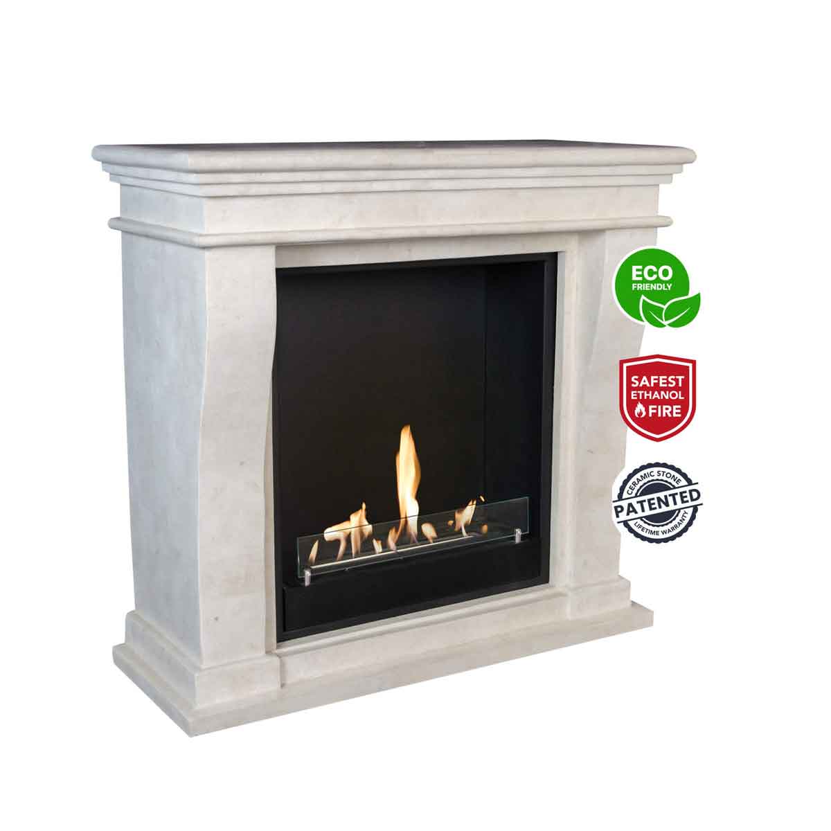 Xaralyn KRETA MINI Stein Weiß – Ethanolkamin aus Naturstein mit natürlichem Flammenspiel