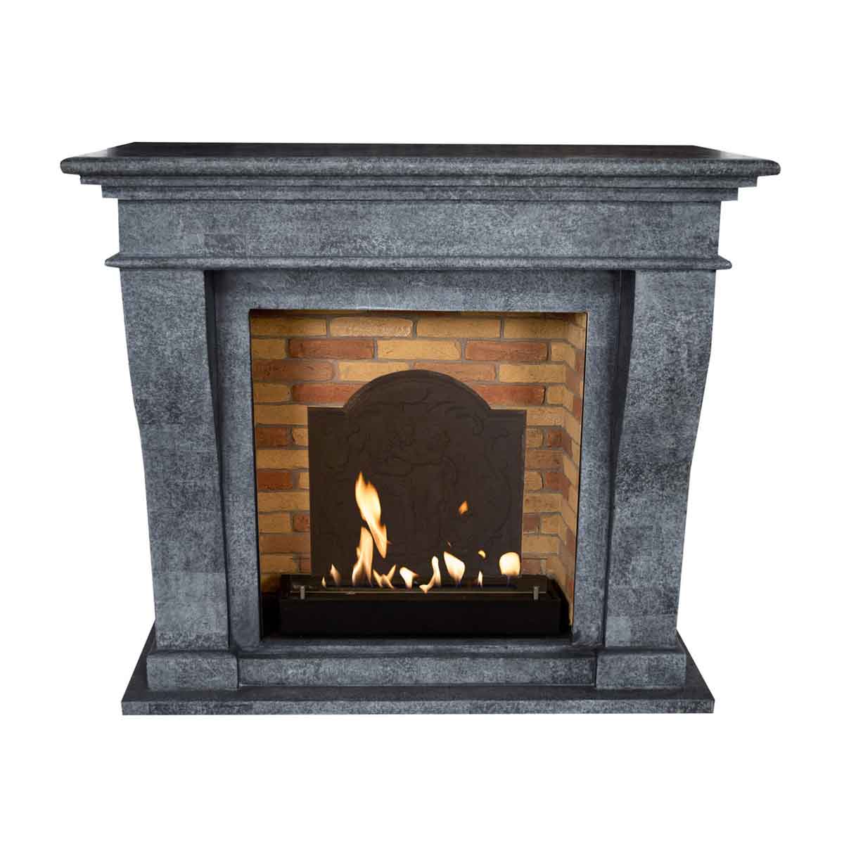 Bioethanolkamin KRETA Stein Anthrazit mit Steindekor & Medaillon