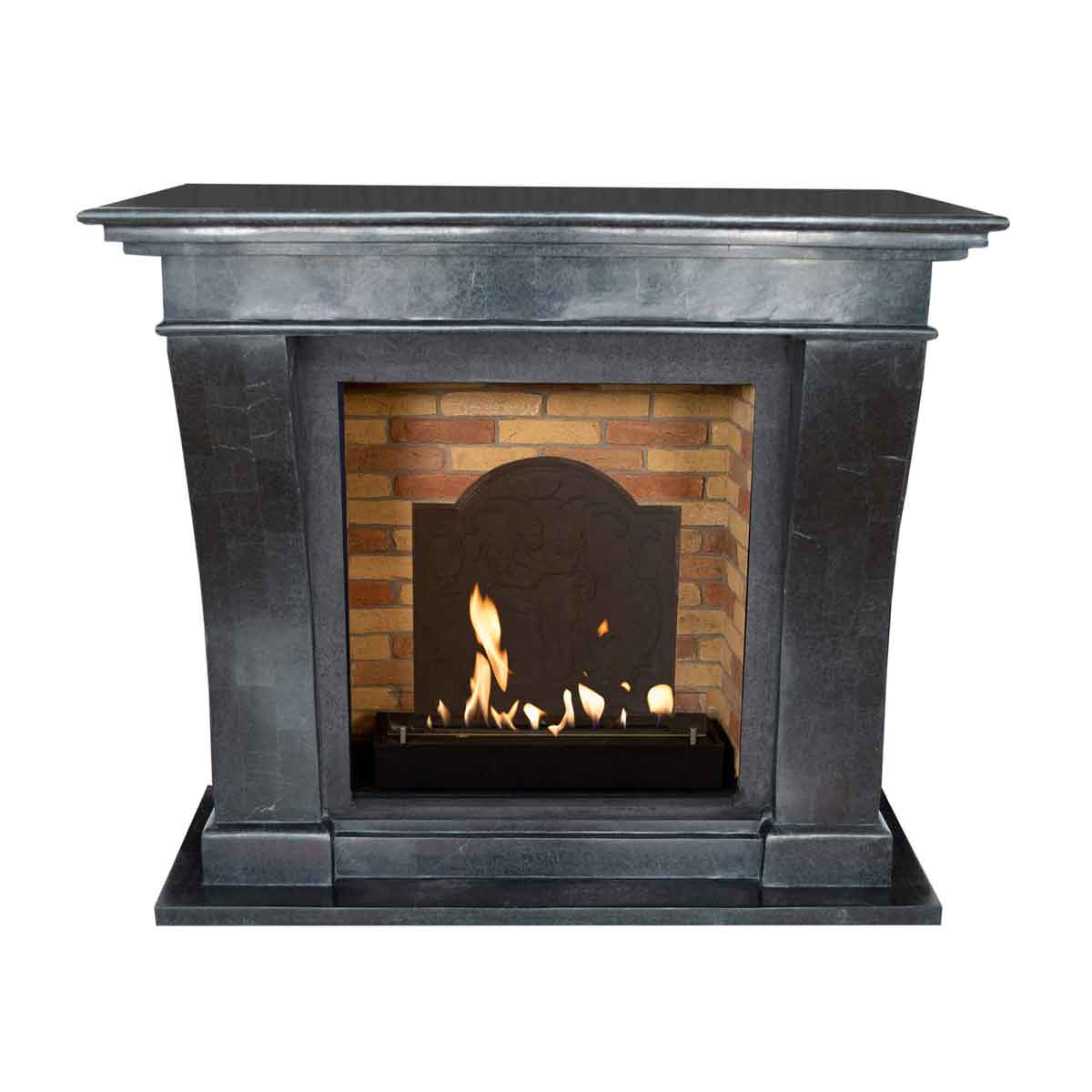 Xaralyn KRETA Stein Anthrazit/Dekor/Medaillon – Ethanolkamin aus Naturstein mit natürlichem Flammenspiel