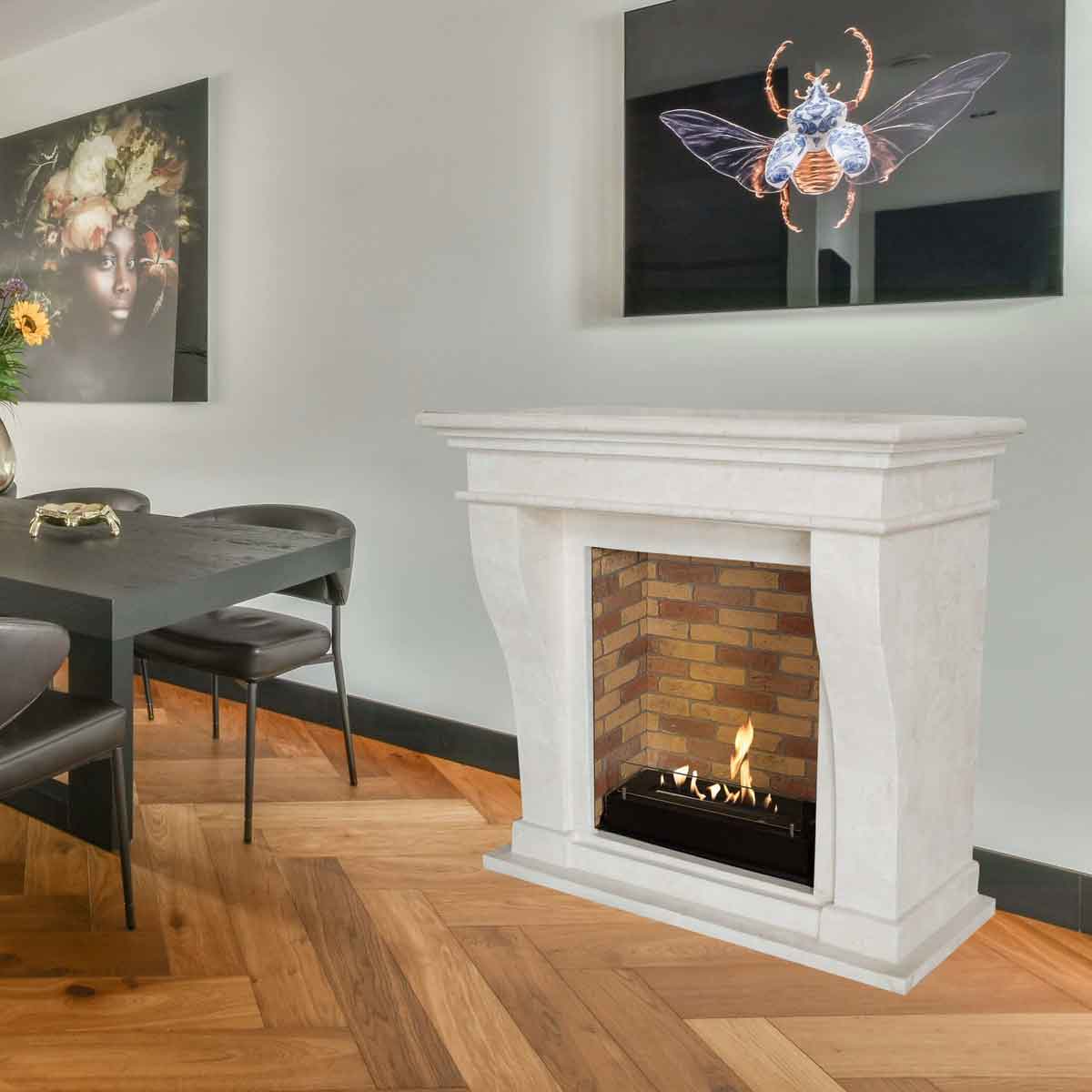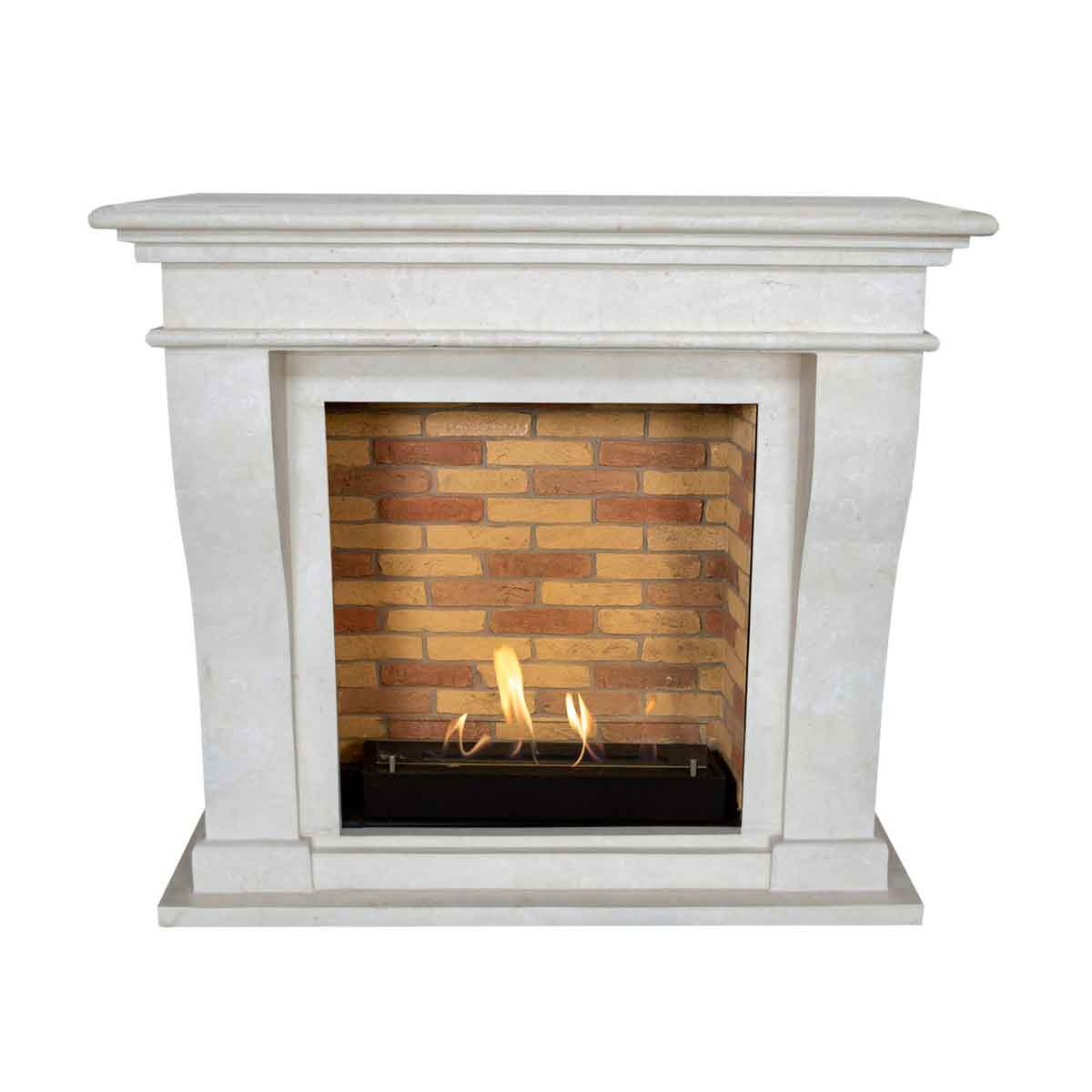 Xaralyn KRETA Stein Weiß/Dekor – Ethanolkamin aus Naturstein mit natürlichem Flammenspiel
