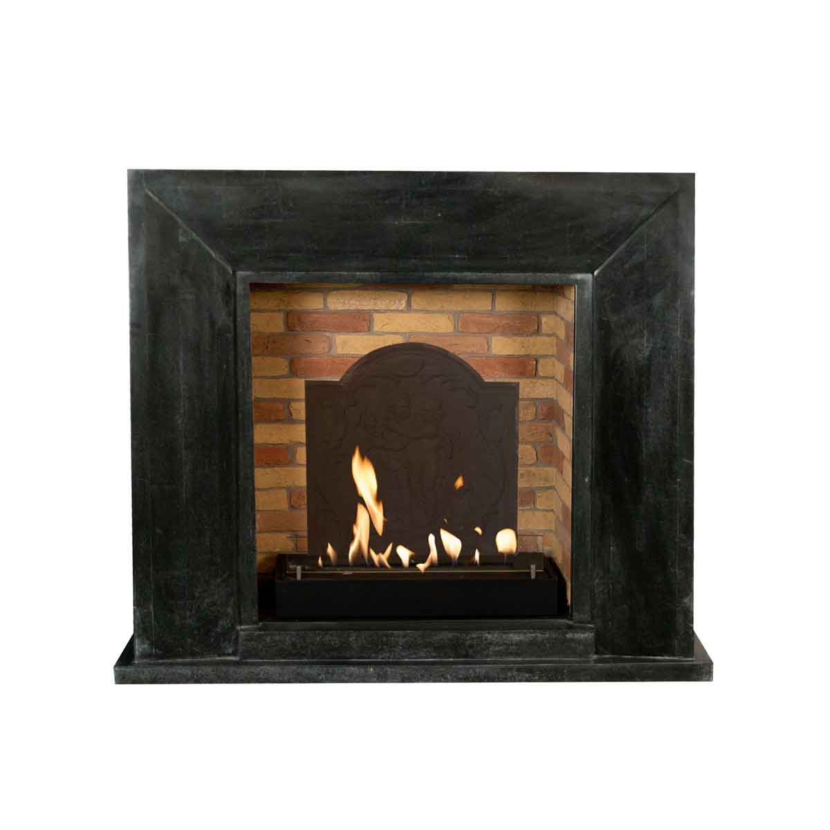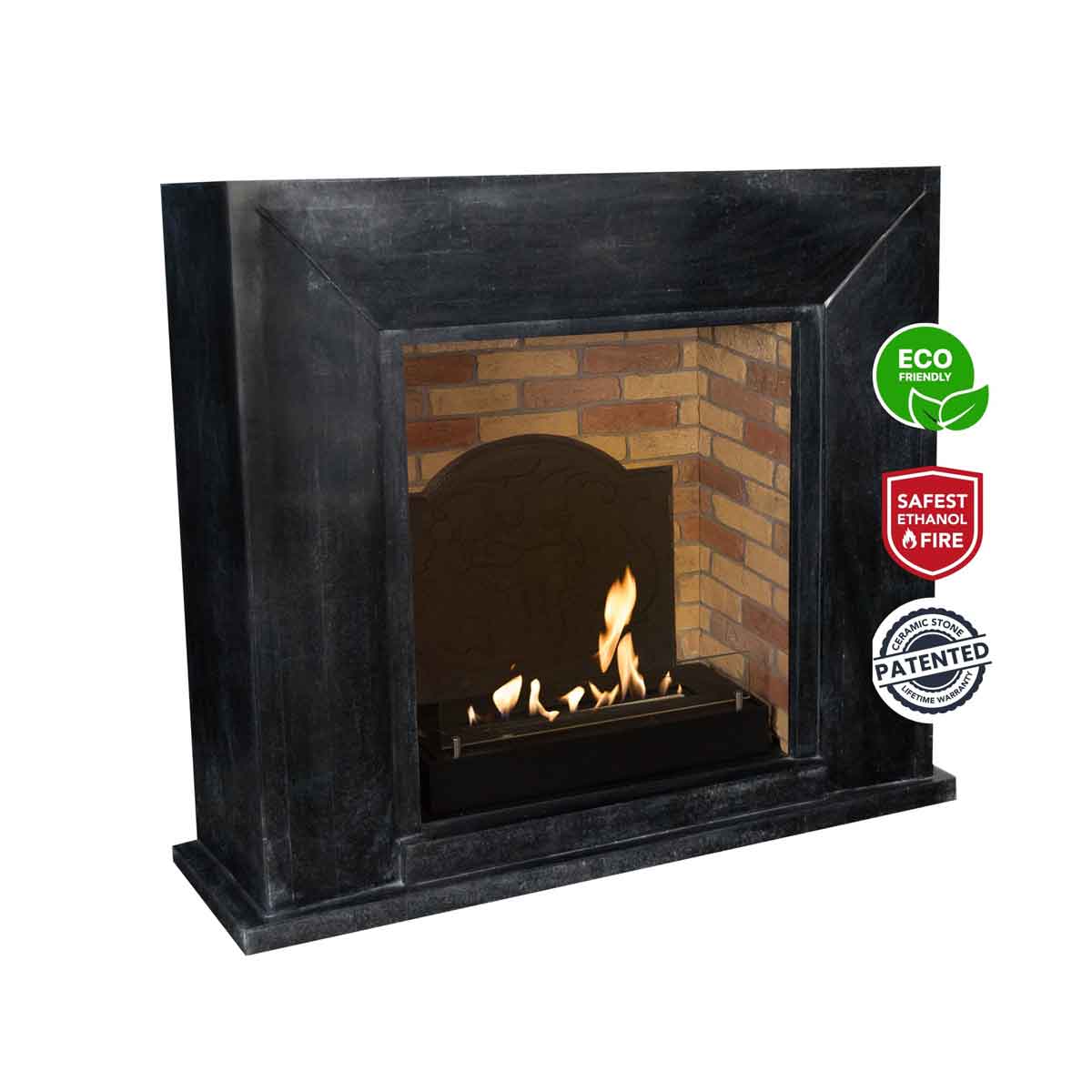 Modell: XARALYN Bioethanolkamin Nero mit Bioethanoleinsatz mit Brenner L & Steindekor mit Medaillon