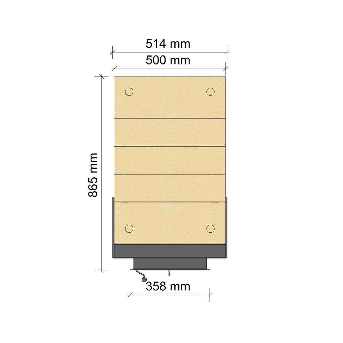 Optional: BRULA modular ceiling flue system complete, modular flue blocks, cast iron connection spigot, assembly mortar for complete firebox type D Plus including 90° combustion chamber exhaust block (top exhaust), cleaning openings optionally on the right, left or front. Weight: 320 kg