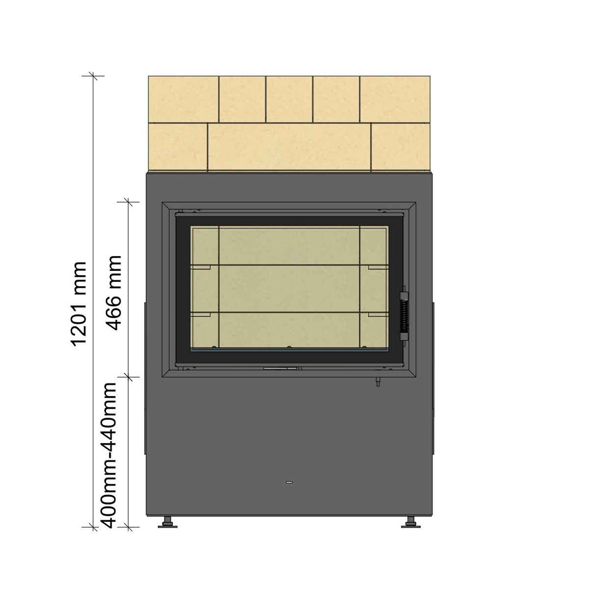 Optional: BRULA modular ceiling flue system complete, modular flue blocks, cast iron connection spigot, assembly mortar for complete firebox type C Plus including 90° combustion chamber exhaust block (top exhaust), cleaning openings optionally on the right, left or front. Weight: 290 kg