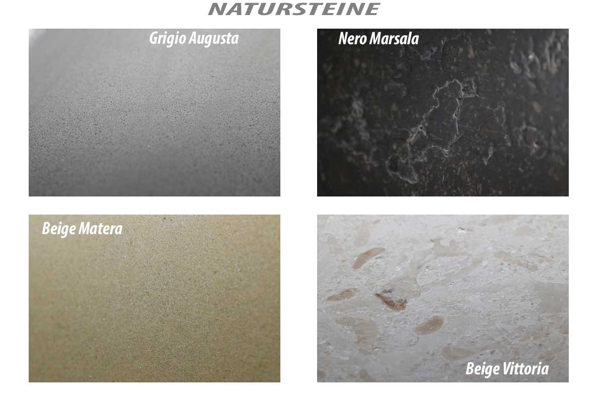 Natural stone types: Nero Marsala / Grigio Augusta / Beige Matera / Beige Vittoria