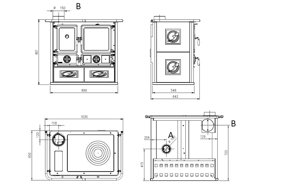 | Exhaust connection (Ø): | 150 mm (on top/back) |
