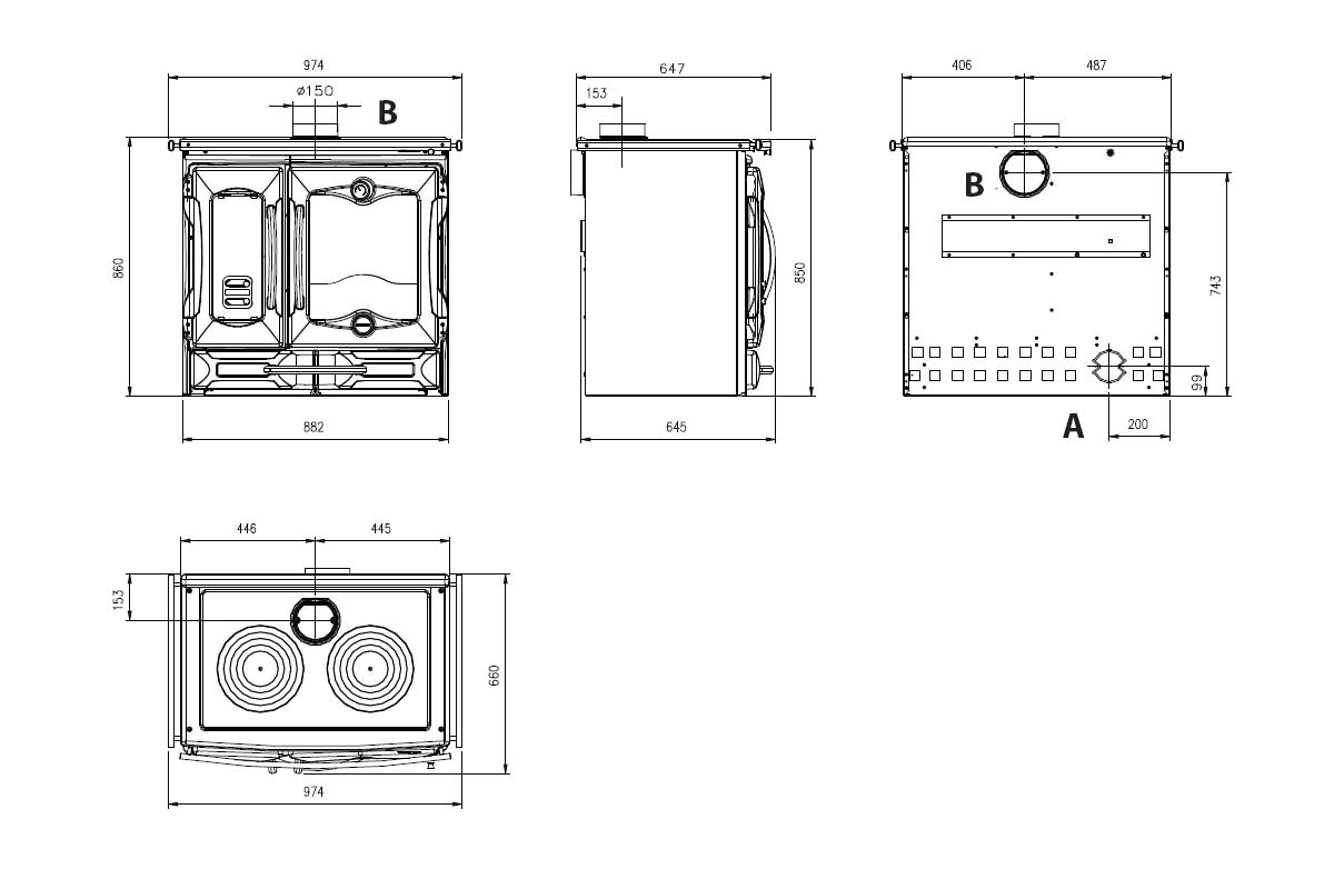 | Exhaust connection (Ø): | 150 mm (on top/back) |
