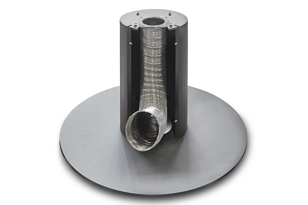 The Base model has a newly developed stand that offers the fireplace additional installation options. An outside air connection can be placed in the base for any external combustion air.
