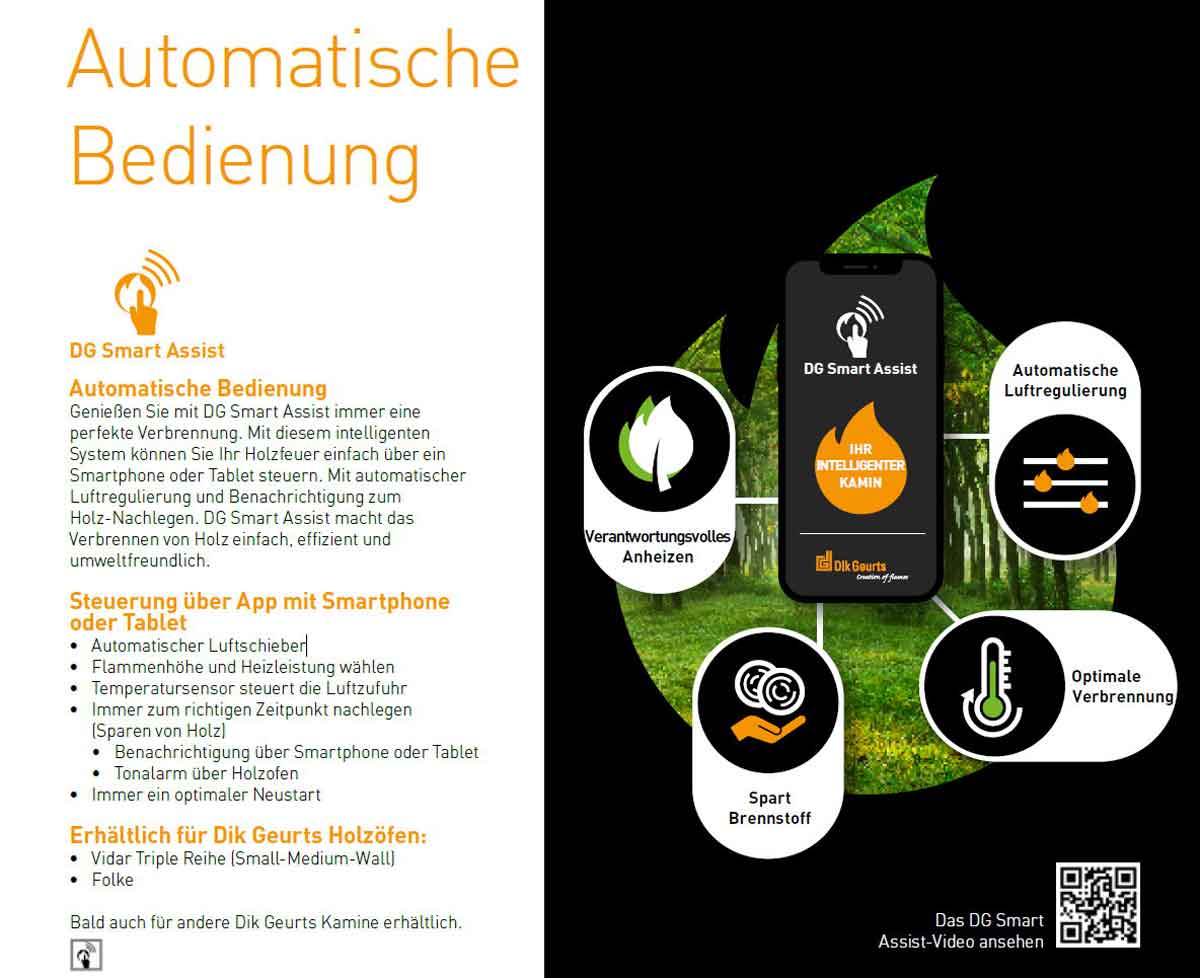 Always enjoy perfect combustion with DG Smart Assist. With this intelligent system, you can easily control your wood fire via a smartphone or tablet. With automatic air regulation and notification for adding wood. DG Smart Assist makes burning wood simple, efficient and environmentally friendly.