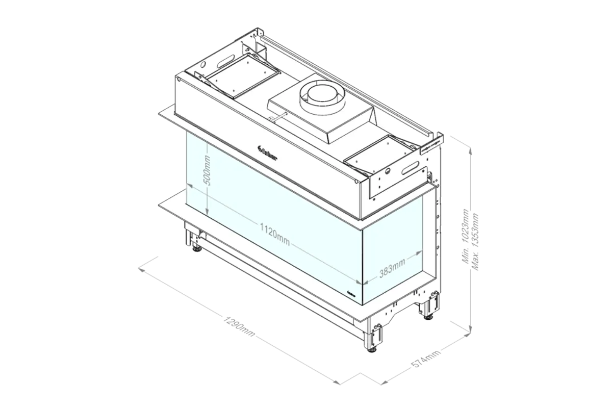 - Fire view W x H x D mm: 1122 x 500 x 383