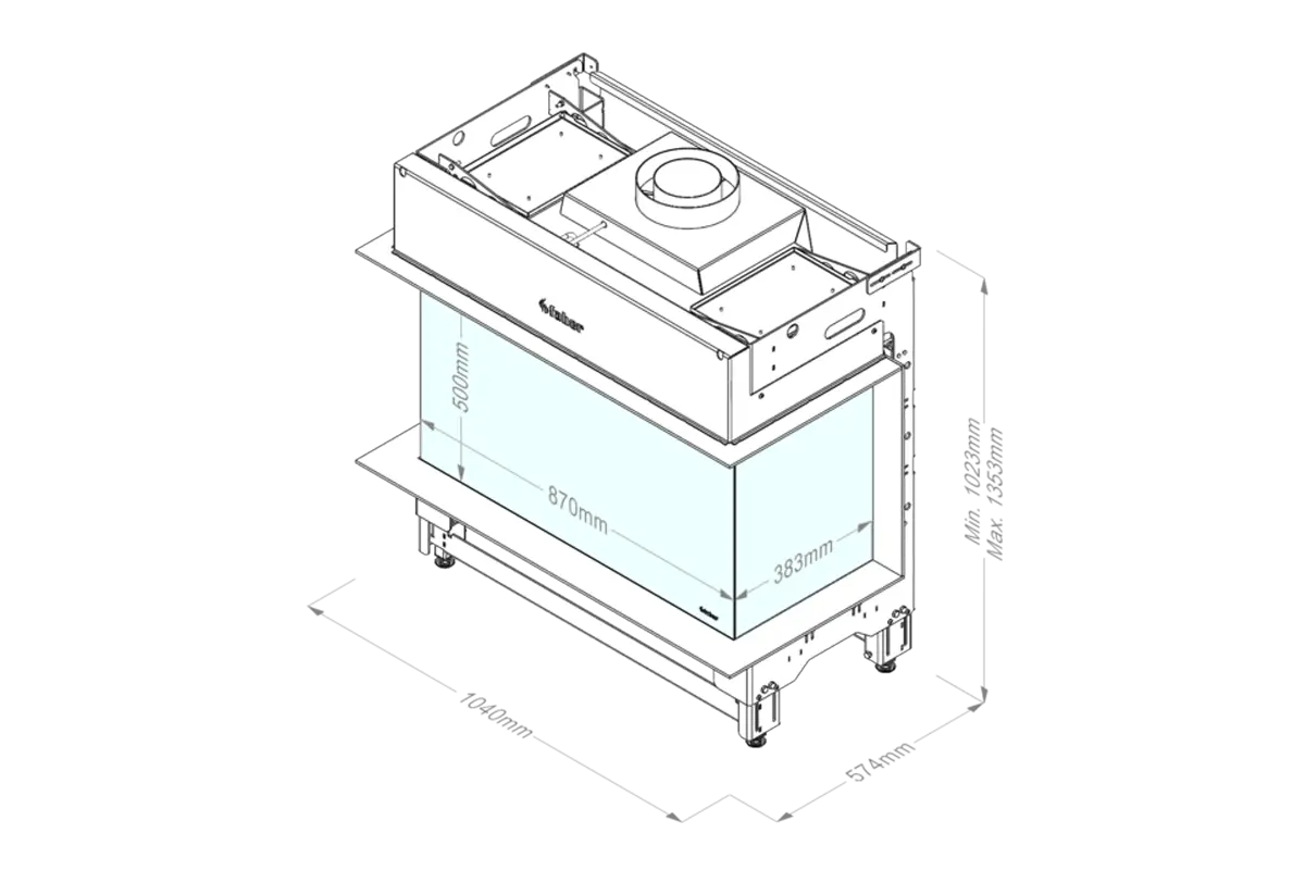 - Fire view W x H x D mm: 872 x 500 x 383