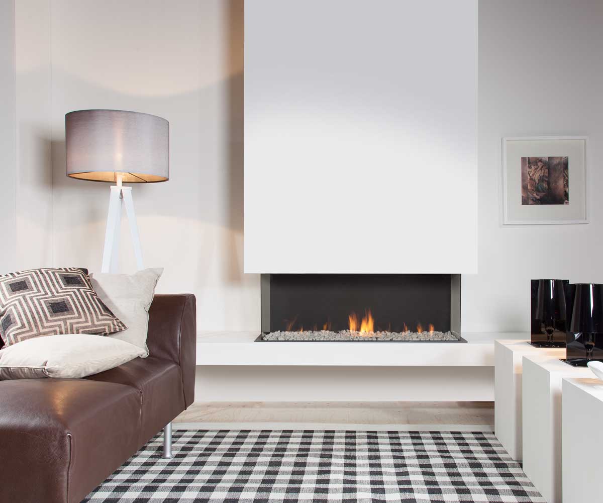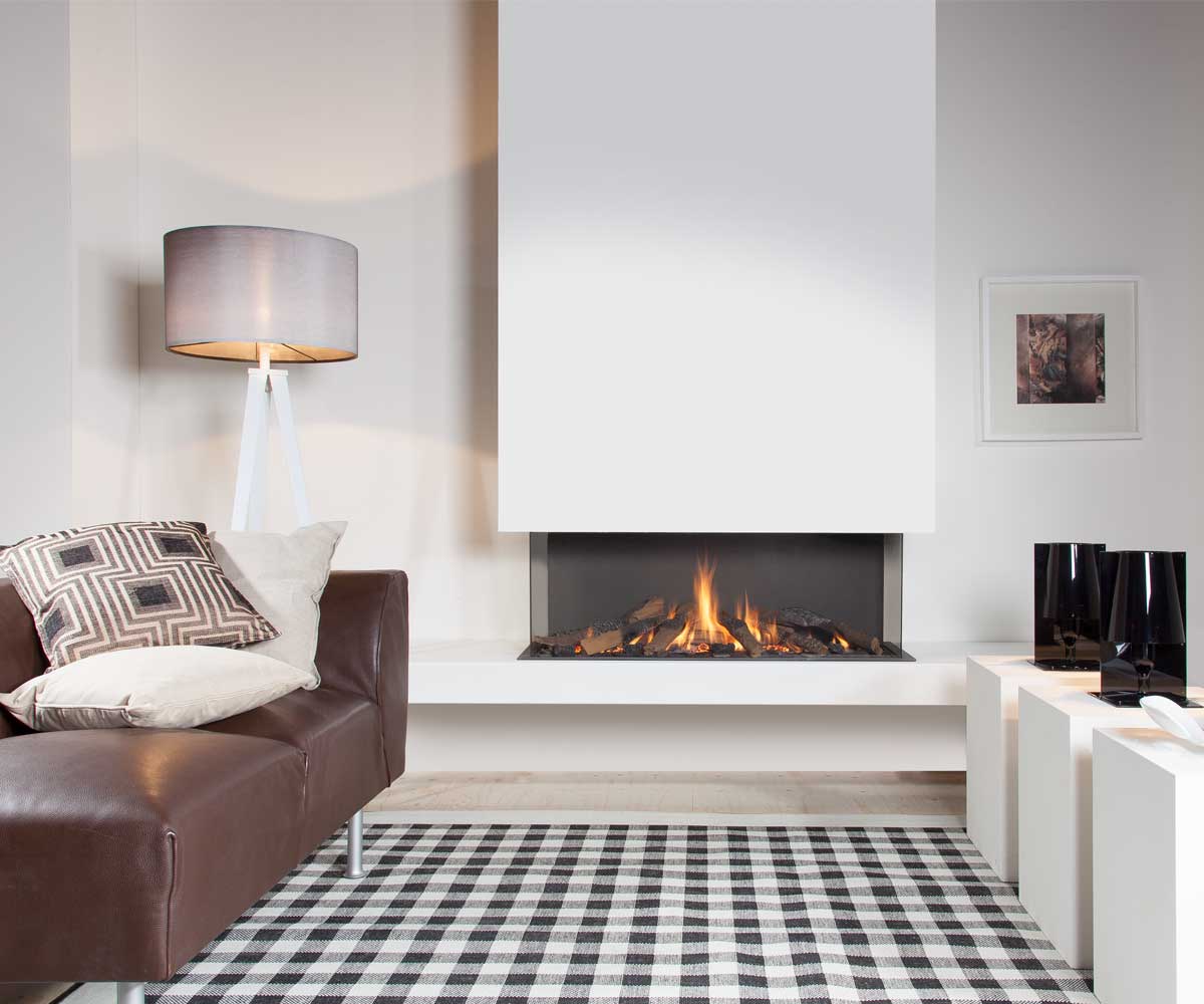 Wanders Danta 1100 U Gas Fireplace: The ideal fireplace for an optimal view of the fire from 3 sides.