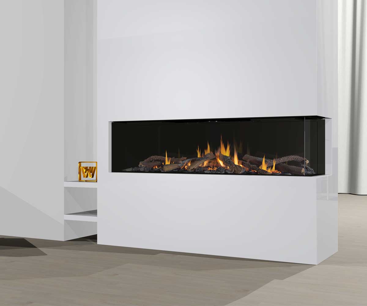 Wanders Danta 1400 Edge Gas Fireplace: The ideal fireplace for an optimal view of the fire from2 sides.