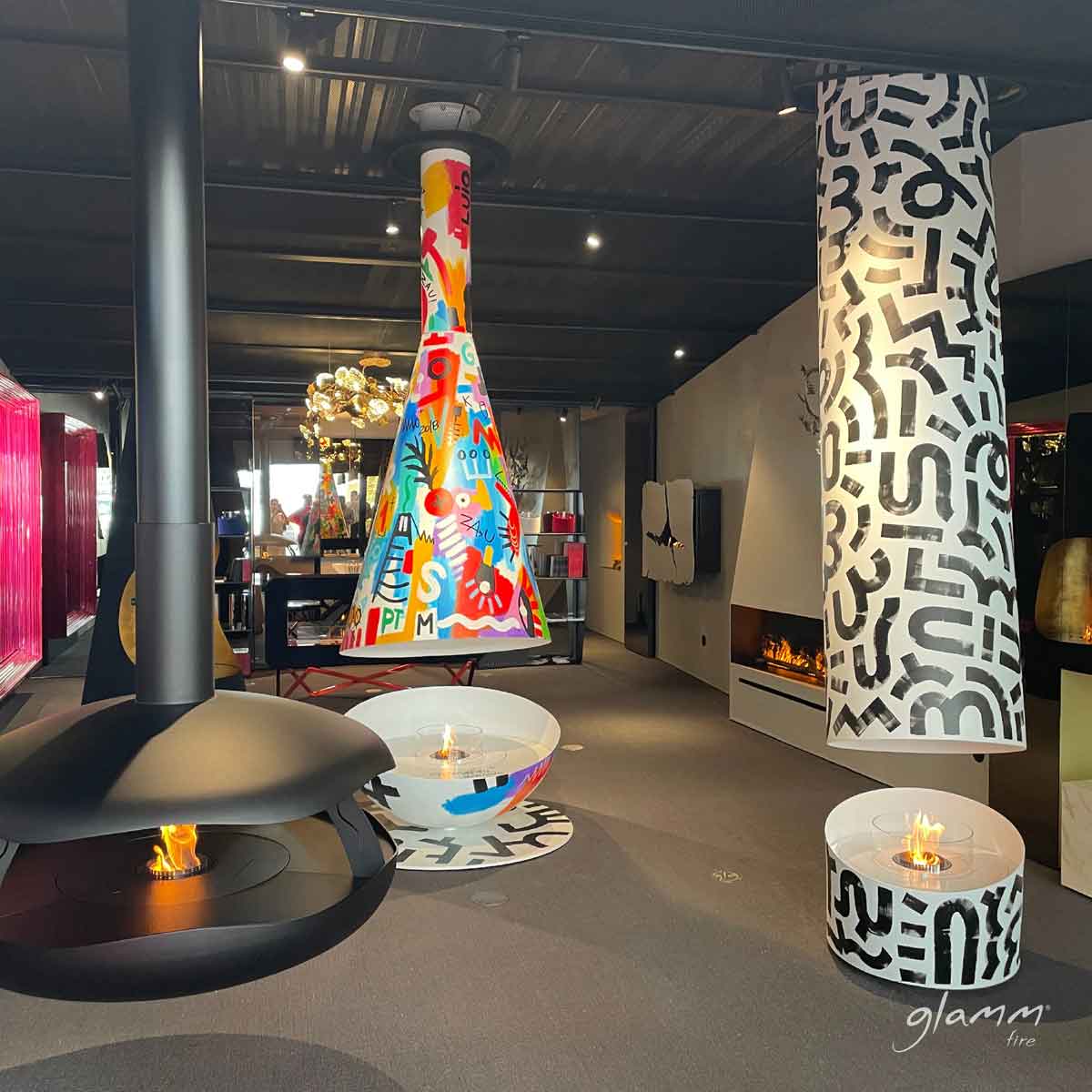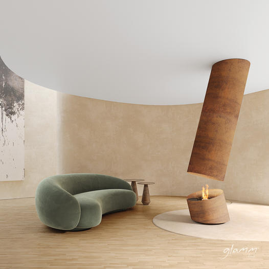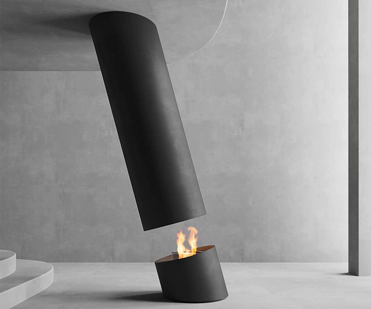 GlammFire Contour 13 – a minimalist, ceiling-mounted bioethanol fireplace with a cylindrical design that impresses with its timeless simplicity and high-quality workmanship.