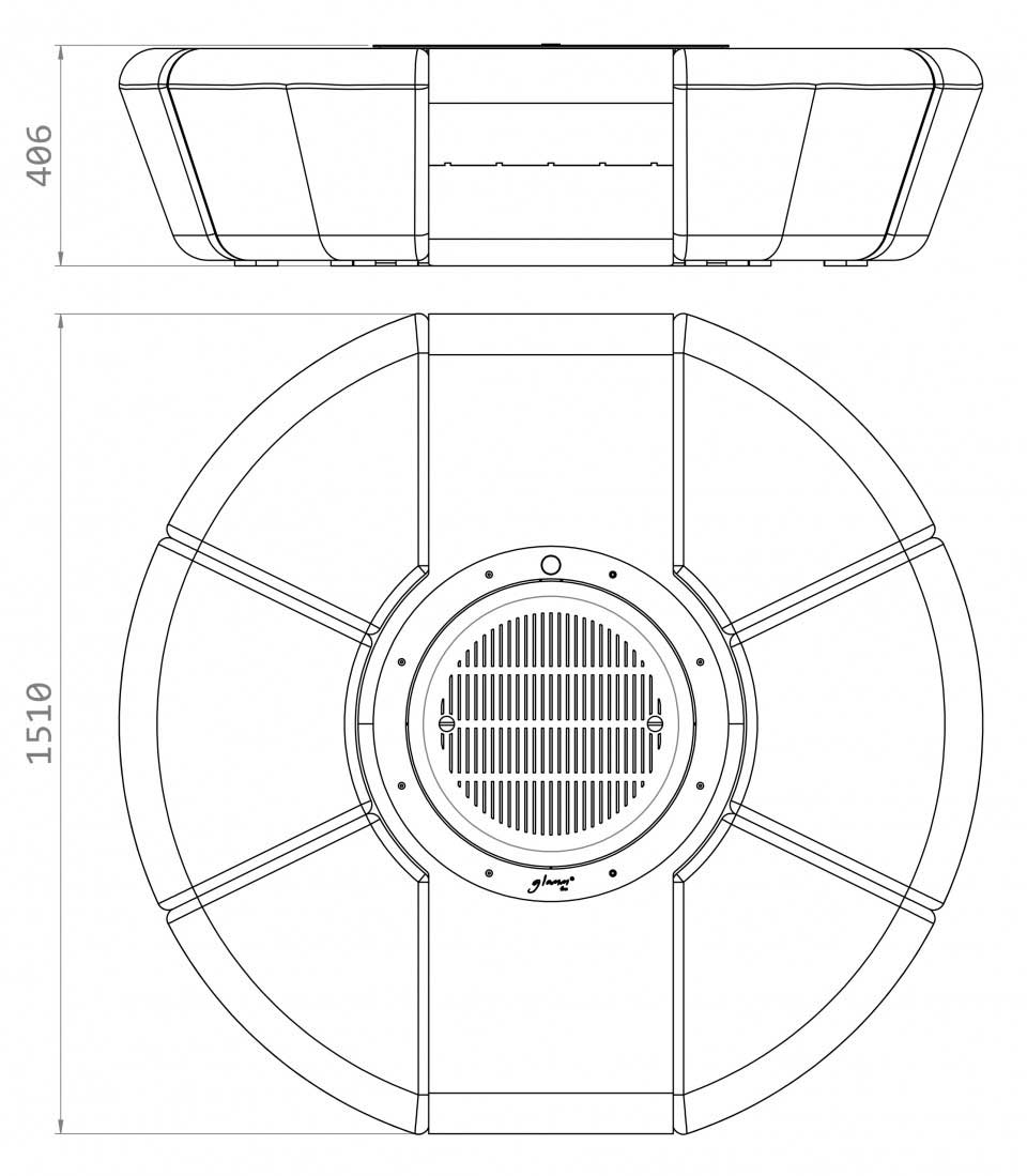 Note: Glammfire fire pits are shown with different burners because they are available for burning wood, bioethanol (manual and automatic), and gas. Therefore, the images shown may not accurately reflect the combustion chamber.