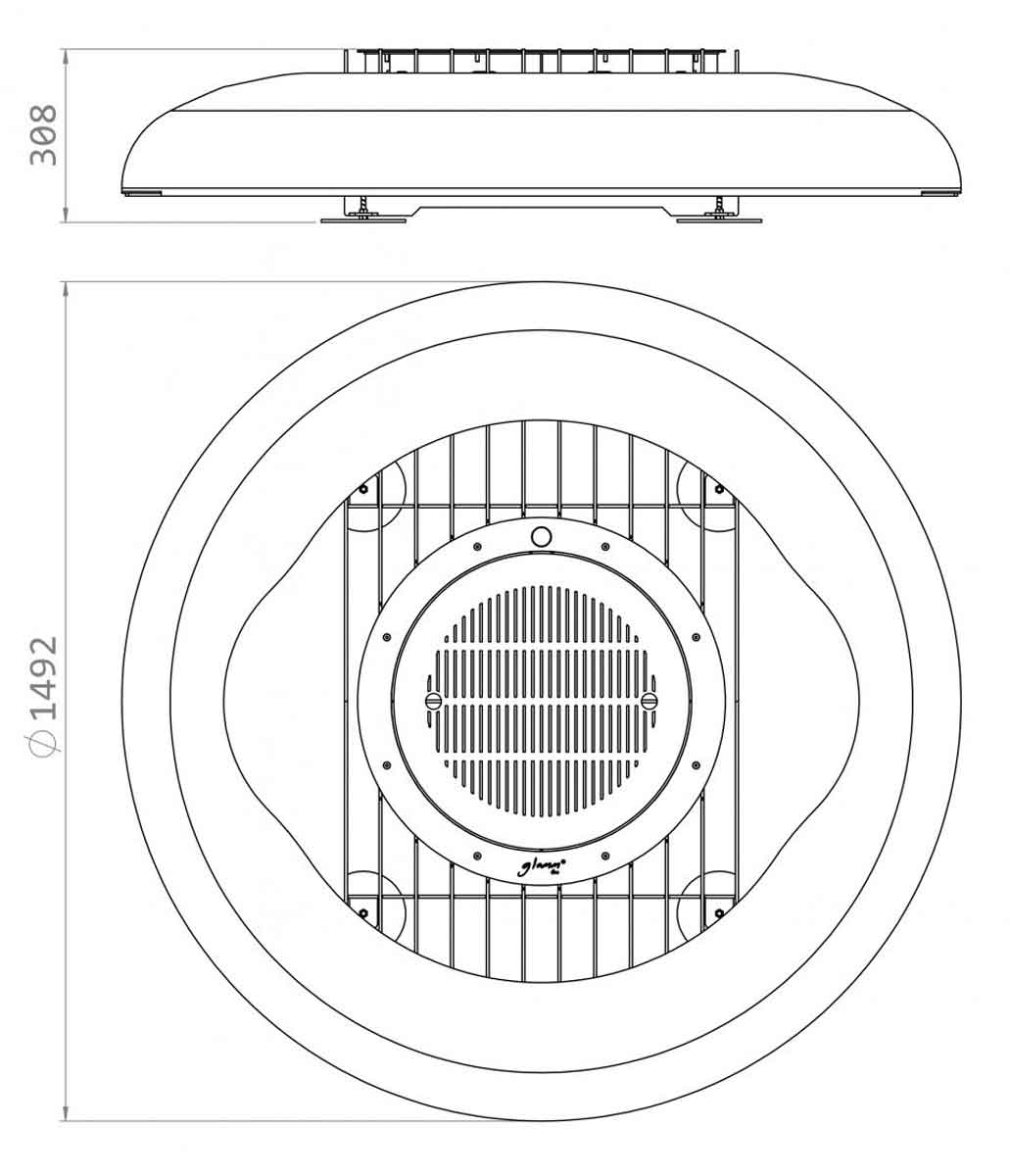 - Dimensions DxH = Ø1492 x 308 mm